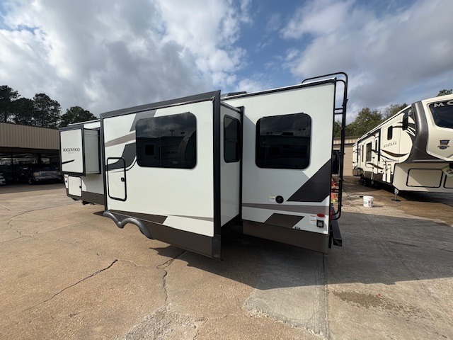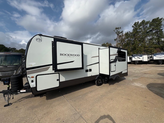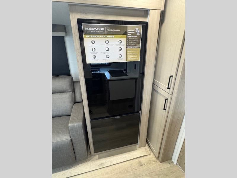 Each Rockwood Ultra Lite travel trailer by Forest River includes superior construction with a high gloss fiberglass cap, aluminum cage construction, and a power awning with LED lighting for a cozy and functional outdoor space. The torsion axle, power tongue jack will make towing smooth and hassle-free, along with the nitrogen filled, Goodyear Endurance tires and the tire pressure monitor system. Interior comforts include kitchen sink with high rise faucet, hidden hinge cabinet doors, and roller shades to name a few. Choose a Rockwood Ultra Lite travel trailer today!
