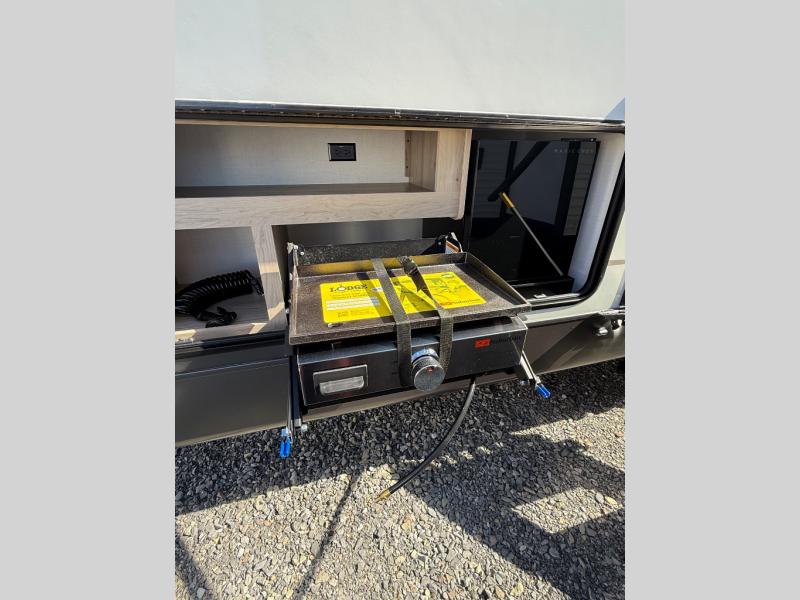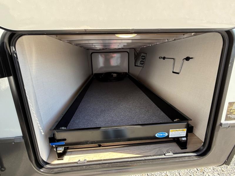 Looking for a trailer that sleeps eight, allows you to cook indoors or outdoors, and provides added interior space? This trailer provides for those wants and needs, and even more! The outside kitchen gives you more choices when feeding the masses along with the outside griddle, and the interior kitchen includes an L-shaped area for the cook to have their own space with full amenities including a walk-in pantry to bring along everything they need. The full bathroom will keep everyone refreshed, and the theater seating and U-shaped dinette offer seating inside to enjoy the Smart TV and fireplace. There is plenty of storage found throughout the interior, and along the exterior you will find several places to stow your outdoor items including in the pass thru storage with an optional steel sliding tray. There is even a front door option if you prefer to have dual entry doors!