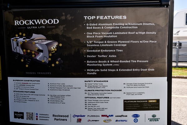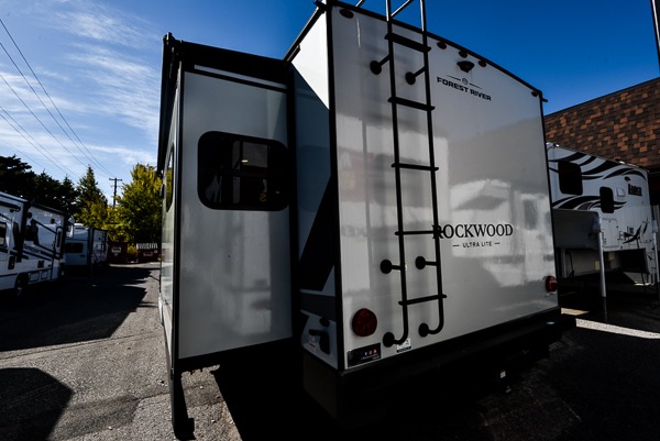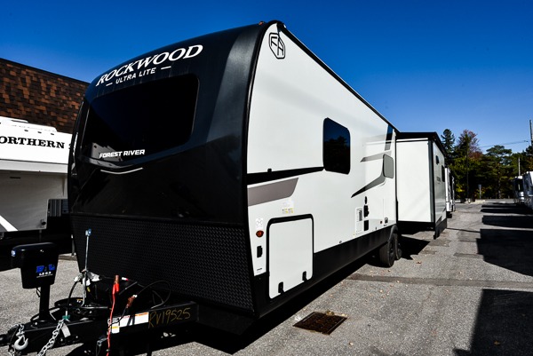 Each Rockwood Ultra Lite travel trailer by Forest River includes superior construction with a high gloss fiberglass cap, aluminum cage construction, and a power awning with LED lighting for a cozy and functional outdoor space. The torsion axle, power tongue jack will make towing smooth and hassle-free, along with the nitrogen filled, Goodyear Endurance tires and the tire pressure monitor system. Interior comforts include kitchen sink with high rise faucet, hidden hinge cabinet doors, and roller shades to name a few. Choose a Rockwood Ultra Lite travel trailer today!