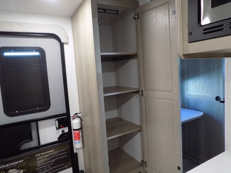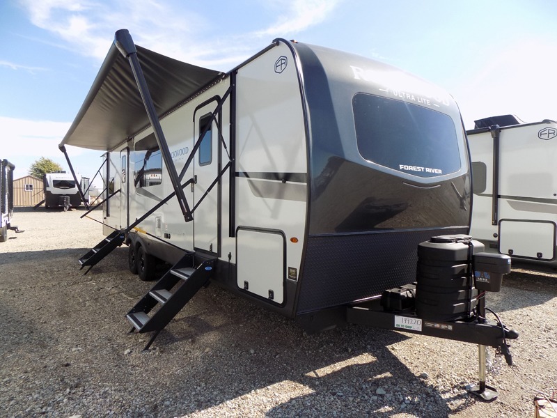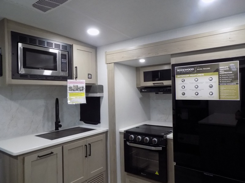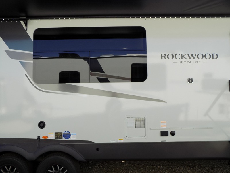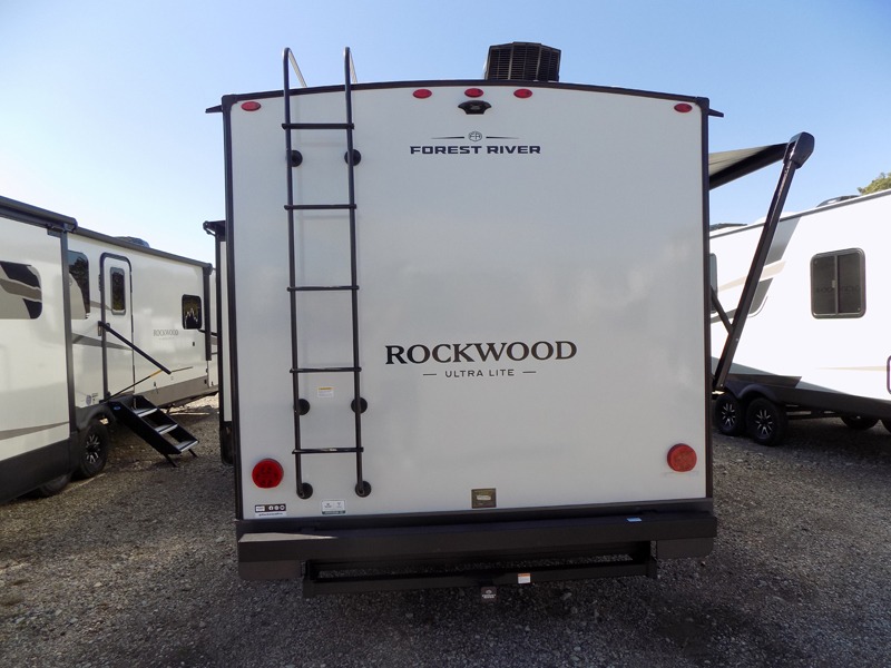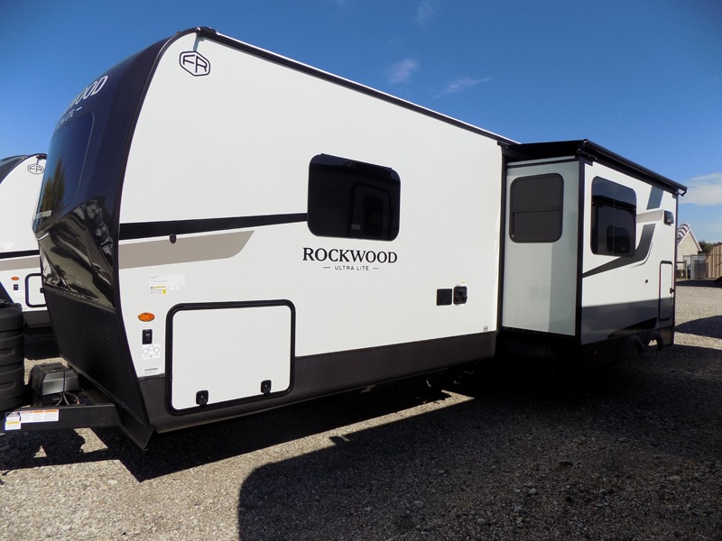 Each Rockwood Ultra Lite travel trailer by Forest River includes superior construction with a high gloss fiberglass cap, aluminum cage construction, and a power awning with LED lighting for a cozy and functional outdoor space. The torsion axle, power tongue jack will make towing smooth and hassle-free, along with the nitrogen filled, Goodyear Endurance tires and the tire pressure monitor system. Interior comforts include kitchen sink with high rise faucet, hidden hinge cabinet doors, and roller shades to name a few. Choose a Rockwood Ultra Lite travel trailer today!
