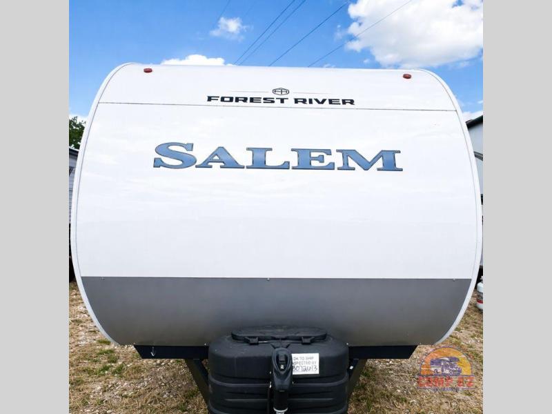 The Salem travel trailers are packed with hassle-free camping amenities and there are a variety of floorplans to choose from. The heated and enclosed Accessibelly will help protect against the elements and debris during transport, and the exterior retro/metal redesign is sure to be eye-catching! There are stylish roller shades inside, along with updated backsplash, elegant curtain rods and curtains, plus many more interior comforts! Choose a Salem travel trailer today for quality and value!