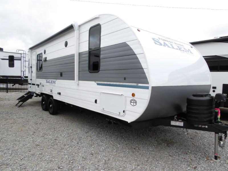 The Salem Cruise Lite travel trailers are packed with hassle-free camping amenities! There are a variety of floorplans to choose from so you can find the best one to fit your needs. The enclosed Accessibelly will help protect against the elements and debris during transport, and the exterior retro/metal redesign is sure to be eye-catching! There are stylish roller shades inside, along with updated backsplash, elegant curtain rods and curtains, plus many more interior comforts! Choose a Salem Cruise Lite travel trailer today for quality and value!