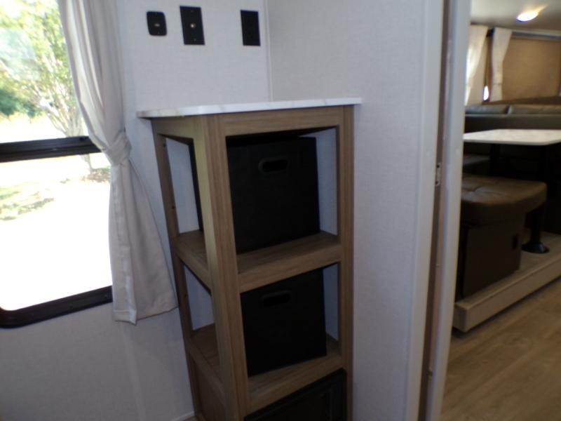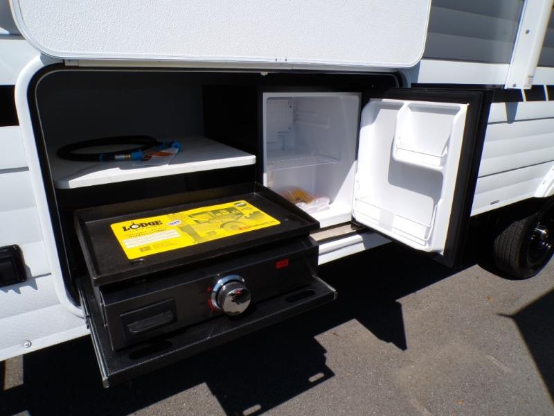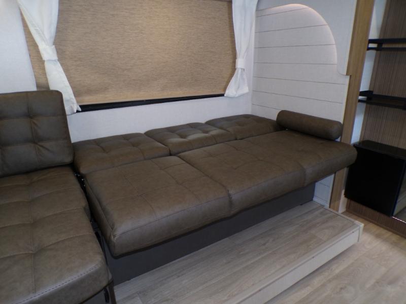 This versatile bunkhouse travel trailer is big enough for the whole family! The private bunkhouse has a set of 30" x 74" bunk beds and a 30" x 74" bunk bed above a Jiffy sofa. Just outside the bunkhouse is a pantry big enough to store everyone's favorite snacks, and a full bathroom with a walk-in shower. The cooktop is just waiting for you to create a delicious meal, and the U-shaped dinette welcomes everyone to enjoy each meal in comfort, plus there is a large panoramic window for a perfect view of your surroundings. Any time of day kick back on the Versa-lounge and relax by the fireplace at the entertainment center. The exterior features a pass-through storage area for you to keep your outdoor camping gear stowed away when not in use, a 16' awning to protect you, and an exterior camp kitchen!