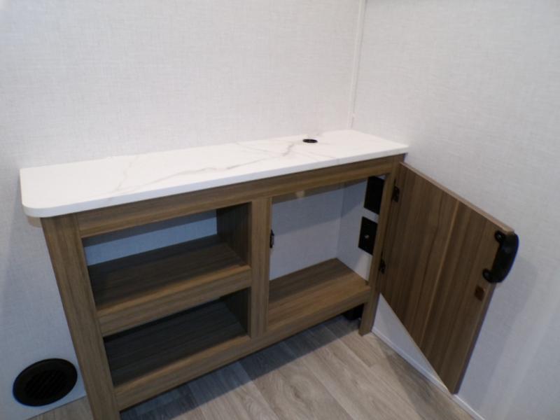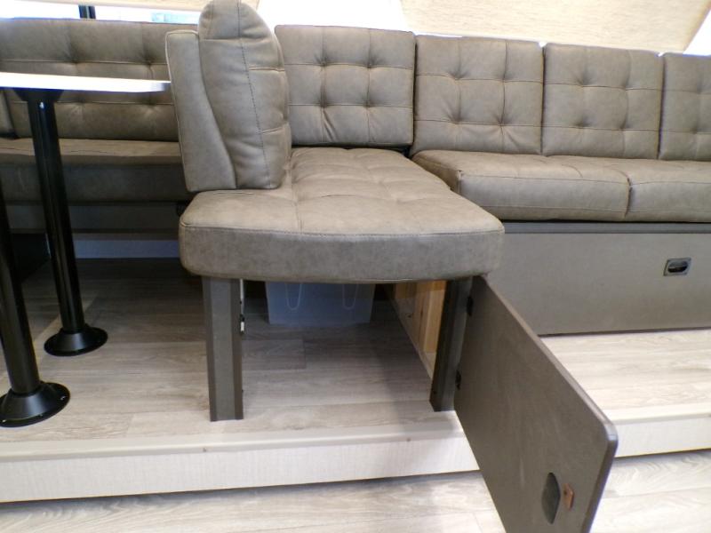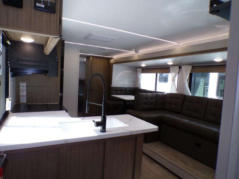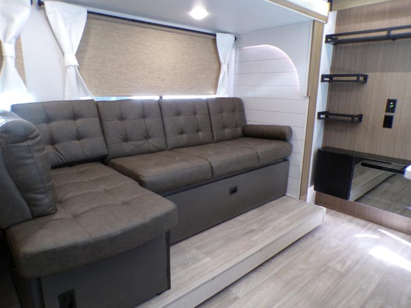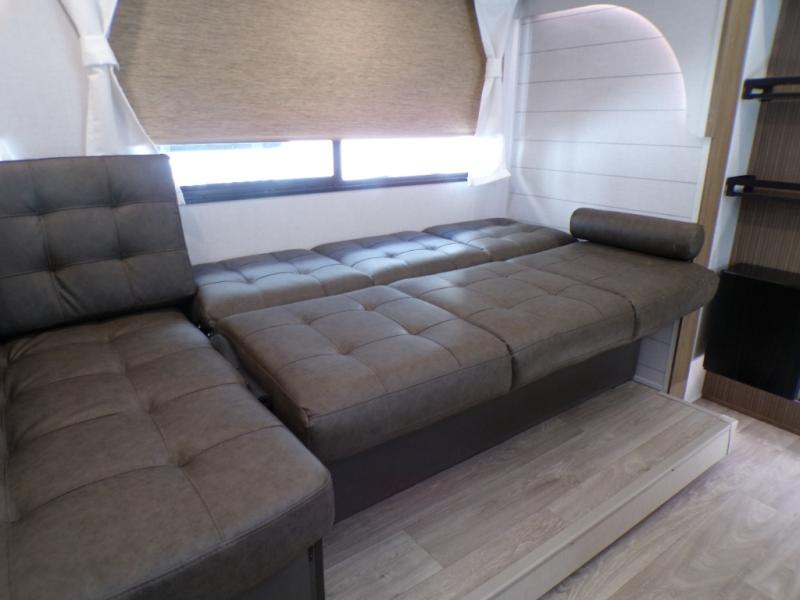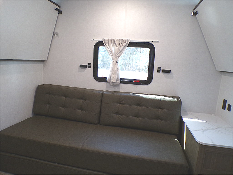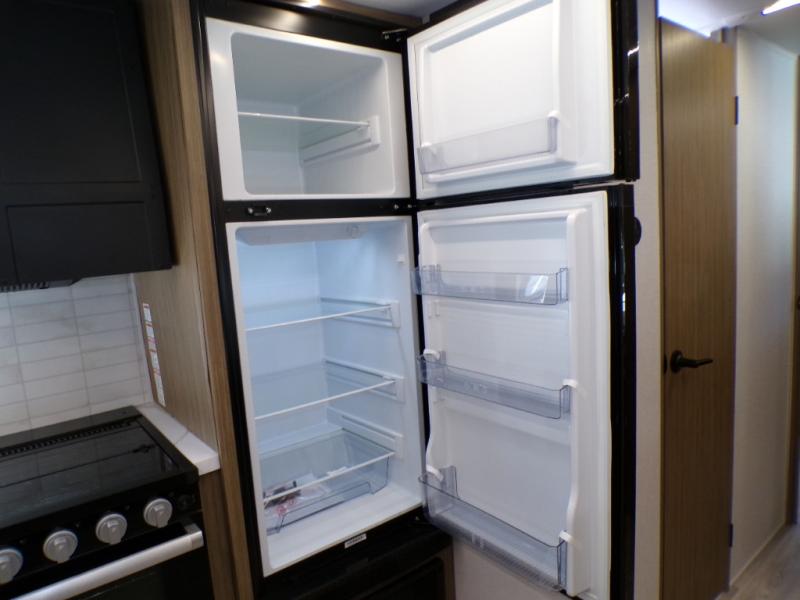 This travel trailer is new to the lineup and offers a large amount of versatility! The rear private bunkhouse has two 30" x 74" Versa-bunks and a Versa-queen bed so that more can join in on the camping fun. Start each morning feeling clean and fresh after showering in the walk-in shower with fiberglass surround then head to the front private bedroom to change. The kitchen has a refrigerator to keep your perishables fresh, a cooktop for meals, and a U-shaped dinette for dining, game time, or just hanging out.