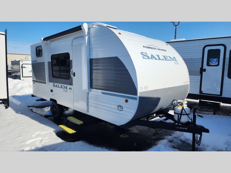 The Forest River Salem FSX travel trailers and toy hauler travel trailers are ultra comfortable and lightweight, perfect for first time or seasoned campers alike! You will love how easy it will be to relax with residential features that will make your space feel just like home, and the durable construction means you can enjoy your RV for years to come. There are a wide variety of floorplans to choose from, including couple's trailers, bunk models, and toy haulers, all with full bath and kitchen amenities and plenty of storage for all your gear!