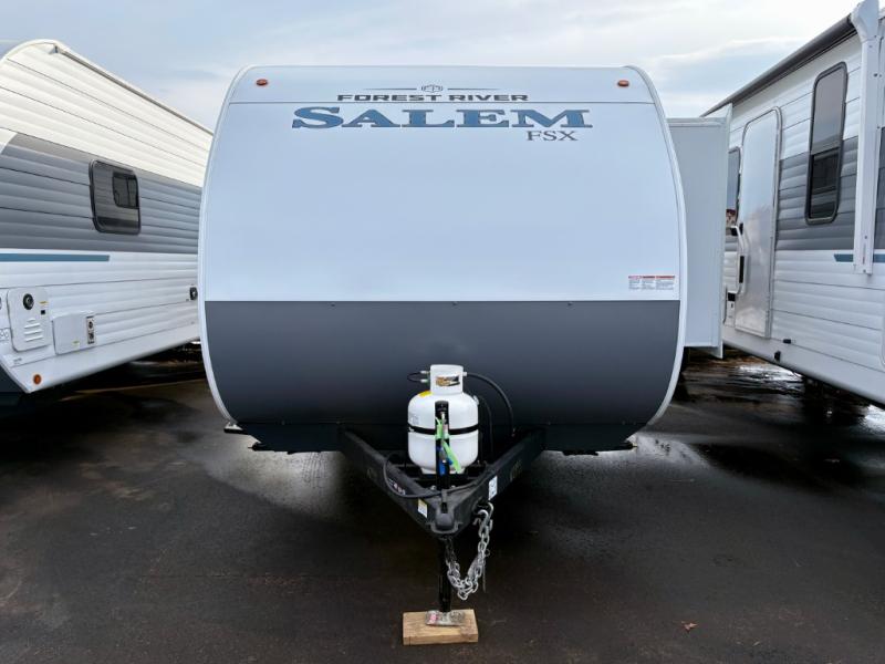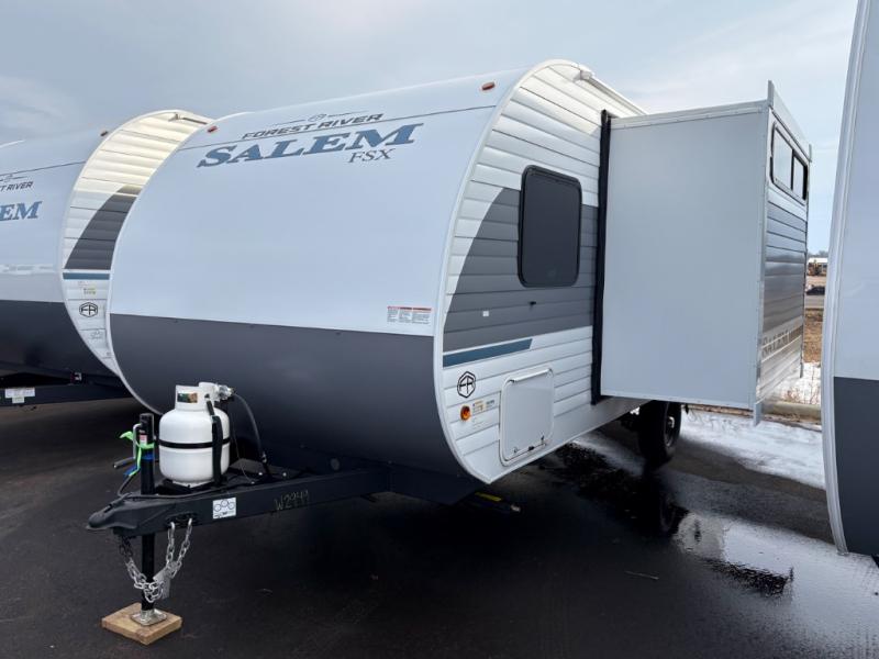 The Forest River Salem FSX travel trailers and toy hauler travel trailers are ultra comfortable and lightweight, perfect for first time or seasoned campers alike! You will love how easy it will be to relax with residential features that will make your space feel just like home, and the durable construction means you can enjoy your RV for years to come. There are a wide variety of floorplans to choose from, including couple's trailers, bunk models, and toy haulers, all with full bath and kitchen amenities and plenty of storage for all your gear!