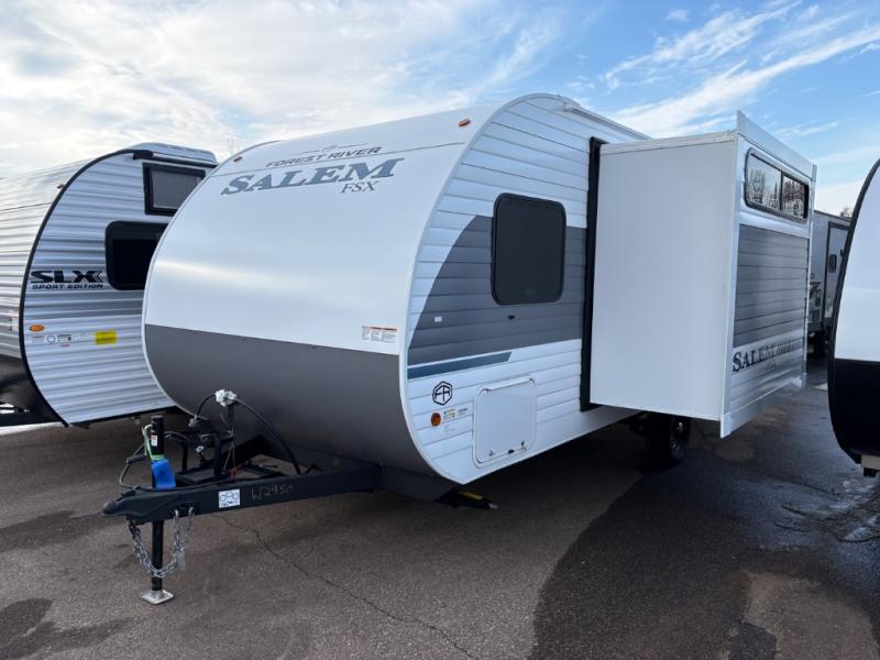 The Forest River Salem FSX travel trailers and toy hauler travel trailers are ultra comfortable and lightweight, perfect for first time or seasoned campers alike! You will love how easy it will be to relax with residential features that will make your space feel just like home, and the durable construction means you can enjoy your RV for years to come. There are a wide variety of floorplans to choose from, including couple's trailers, bunk models, and toy haulers, all with full bath and kitchen amenities and plenty of storage for all your gear!