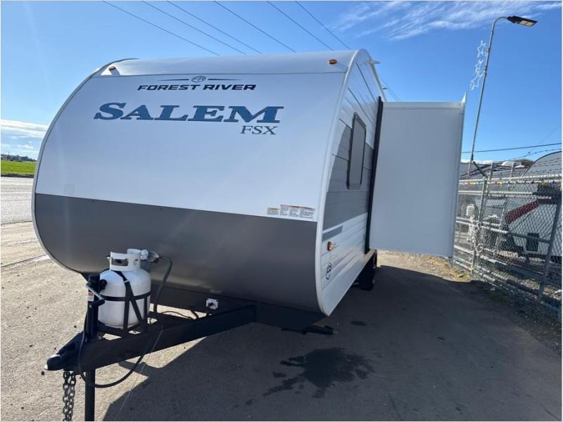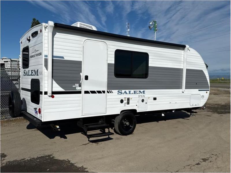 The Forest River Salem FSX travel trailers and toy hauler travel trailers are ultra comfortable and lightweight, perfect for first time or seasoned campers alike! You will love how easy it will be to relax with residential features that will make your space feel just like home, and the durable construction means you can enjoy your RV for years to come. There are a wide variety of floorplans to choose from, including couple's trailers, bunk models, and toy haulers, all with full bath and kitchen amenities and plenty of storage for all your gear!