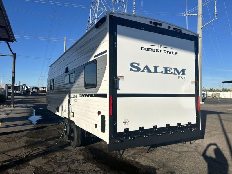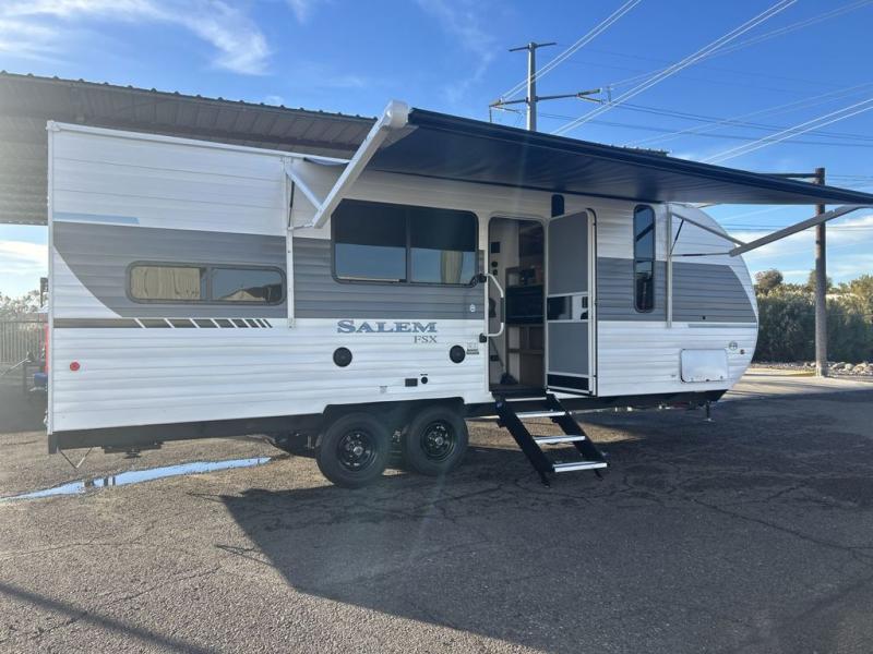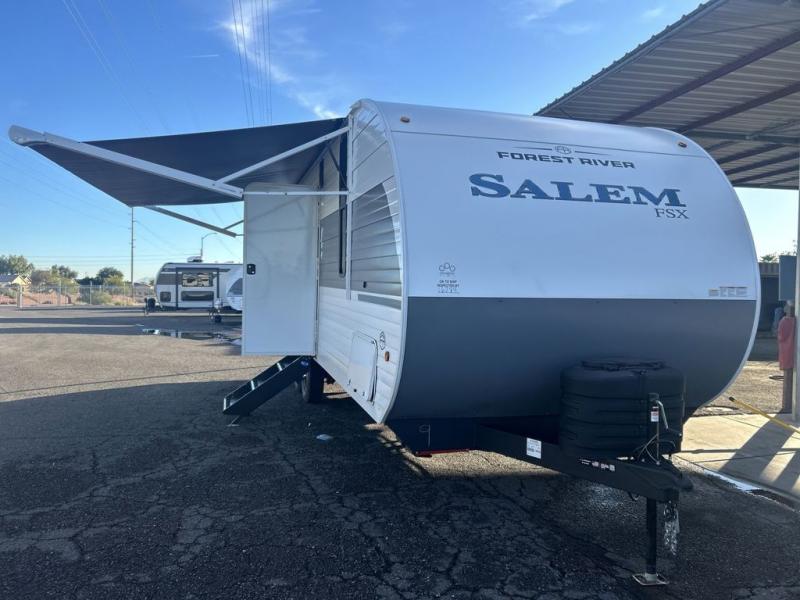 The Forest River Salem FSX travel trailers and toy hauler travel trailers are ultra comfortable and lightweight, perfect for first time or seasoned campers alike! You will love how easy it will be to relax with residential features that will make your space feel just like home, and the durable construction means you can enjoy your RV for years to come. There are a wide variety of floorplans to choose from, including couple's trailers, bunk models, and toy haulers, all with full bath and kitchen amenities and plenty of storage for all your gear!