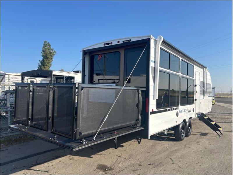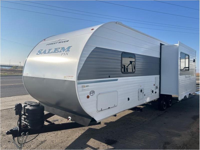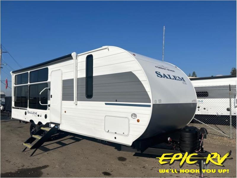 The Forest River Salem FSX travel trailers and toy hauler travel trailers are ultra comfortable and lightweight, perfect for first time or seasoned campers alike! You will love how easy it will be to relax with residential features that will make your space feel just like home, and the durable construction means you can enjoy your RV for years to come. There are a wide variety of floorplans to choose from, including couple's trailers, bunk models, and toy haulers, all with full bath and kitchen amenities and plenty of storage for all your gear!