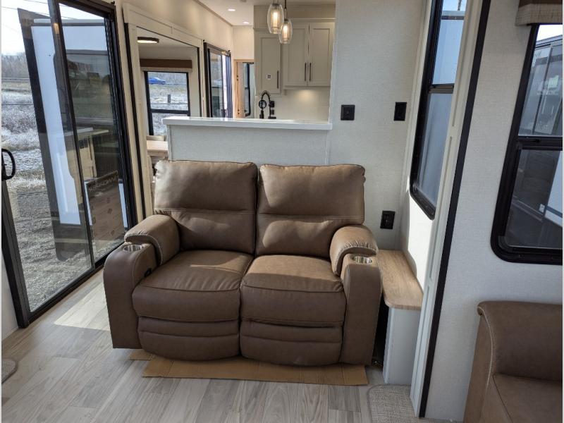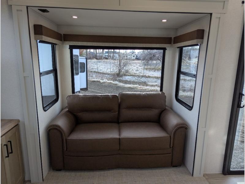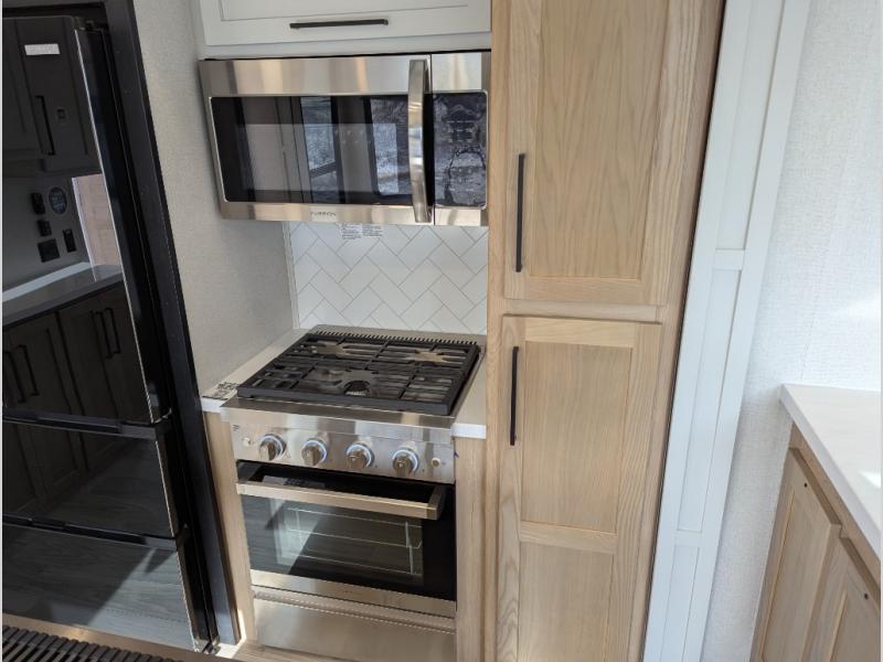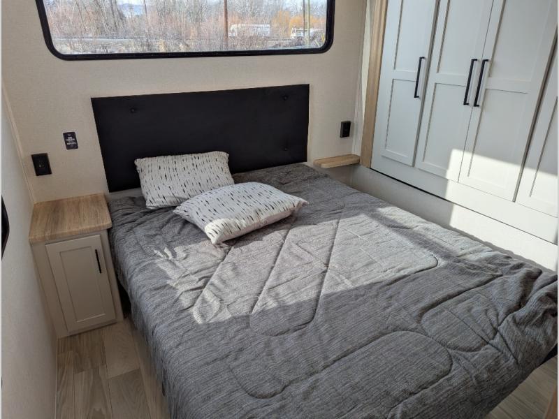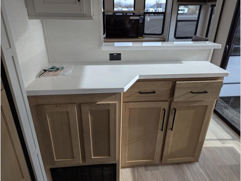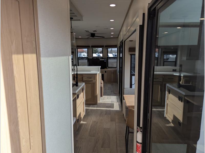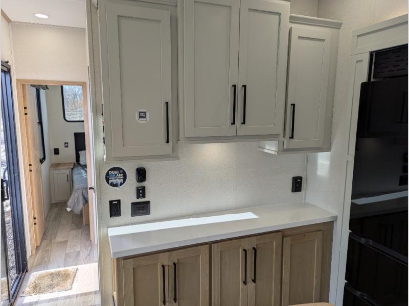 With any Salem Grand Villa destination trailer by Forest River, you can call home wherever you park it! There is a heated and enclosed Accessibelly for added protection, LED "Blade Lighting" under the awning, Lippert On-The-Go ladder prep, plus many more exterior conveniences. Elegant curtain rods and curtains will have you feeling right at home, along with stainless steel kitchen appliances, stylish roller shades, and enhanced floating shelves for added storage. Each model includes heavy duty cabinet hinges for safety and durability, a 60k on-demand tankless water heater for endless hot showers, a JBL 3-Zone media center, plus available options to further customize your trailer.