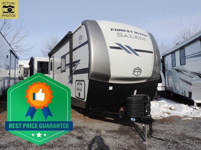 The Salem Hemisphere travel trailers by Forest River are packed with features, while still being value-minded! Each model is constructed with laminated "Aluma Frame" sidewalls and floor with block foam insulation plus an enclosed underbelly with 12V tank heaters on all holding tanks. There are LED awning, marker and taillights outside, along with an extra-large pass-thru storage with slam latch baggage doors, plus solar prep and Lippert On-The-Go ladder prep. The 60K on-demand tankless water heater will provide endless hot showers, and the JBL sound system includes a head unit plus interior and exterior speakers to keep the party going. There are also many interior comforts found throughout that will make you feel right at home!