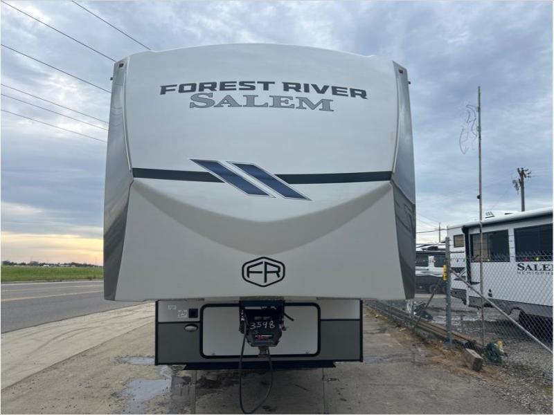 The Salem Hemisphere fifth wheels by Forest River are packed with features, while still being value-minded! Each model is constructed with laminated "Aluma Frame" sidewalls and floor with block foam insulation plus full-length barreled ceilings for added head space. There are LED awning, marker and taillights outside, along with an extra-large pass-thru storage with slam latch baggage doors, plus solar prep and Lippert On-The-Go ladder prep. The 60K on-demand tankless water heater will provide endless hot showers, and the JBL sound system includes a head unit plus interior and exterior speakers to keep the party going. There are also many interior comforts found throughout that will make you feel right at home!