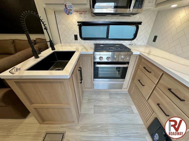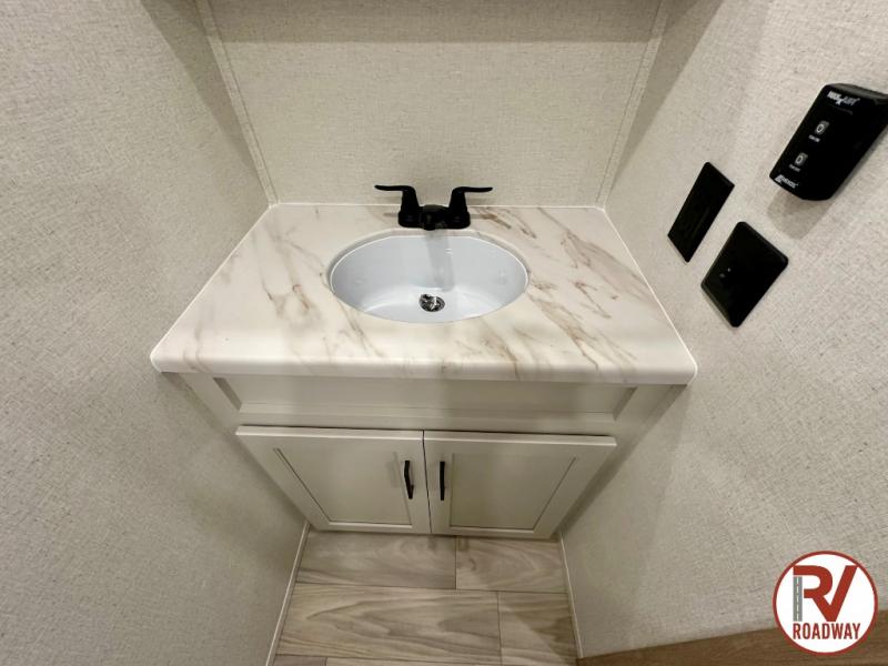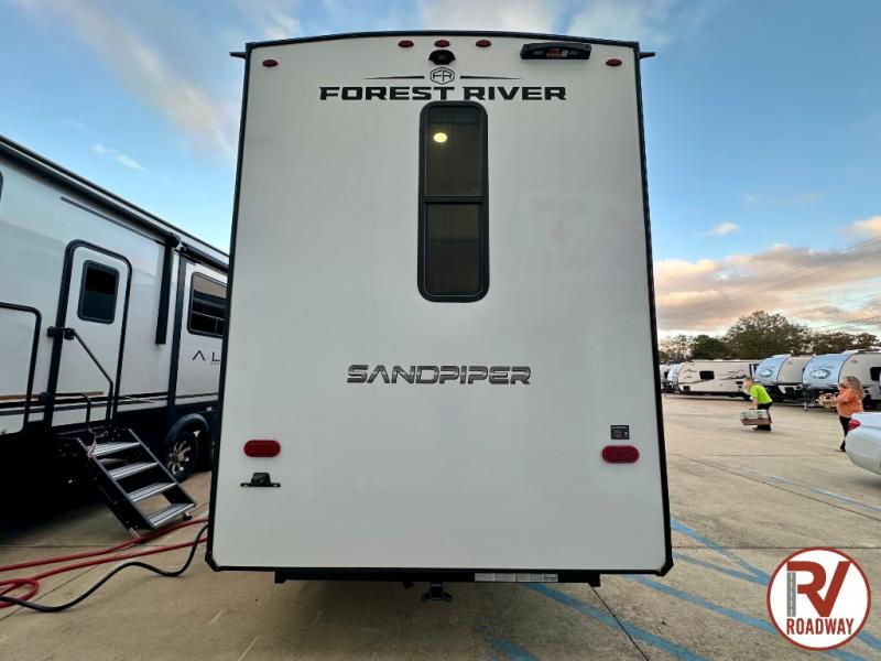 You will find the perfect balance of size, space, features, and luxury with any one of these Forest River Sandpiper fifth wheels! They have a cambered powder coated frame with rust prohibitor, and a fully enclosed underbelly for added protection against the elements. Also, the power front jacks with spring-loaded pins enhance the convenience, speed, and safety. The large, tinted windows come with a 80/20 UV prohibitors. Some hassle-free amenities include a 60k BTU on-demand water heater, porcelain foot flush toilet(s), tire pressure monitor system, and an electric leveling system! Inside, you'll enjoy stainless steel kitchen package, solid surface kitchen countertops, Beachside Sundance Congoleum linoleum, recessed residential lighting, and many more comforts!