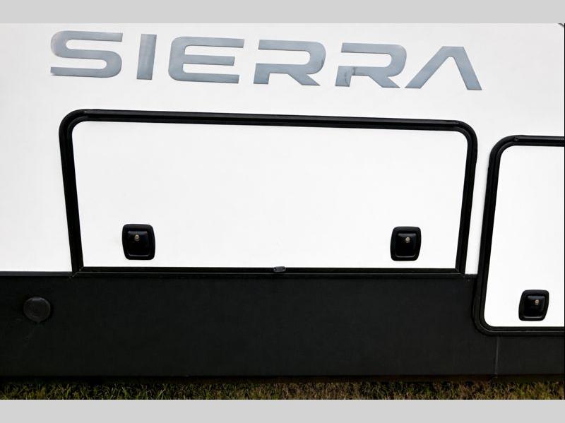 Each one of these Forest River Sierra fifth wheels are equipped with everything you need to make the most of each adventure! The underbelly armor will protect your unit's vitals from road debris and the painted two tone aerodynamic fiberglass front cap has an improved turning radius to make them easier to navigate. With an electric leveling system, you can set your unit up quick and easy then get to having fun faster than ever. The cambered powder coated frame with rust prohibitor construction allows for more duration of the fifth wheel. Each model also comes with a TV antenna with booster, 60,000BTU on demand tankless water heater, Goodyear Radial tires with 7,000 lb. axles, and the list goes on. The interior is just as impressive with Beachside Sundance Congoleum linoleum, recessed residential lighting, a memory foam mattress, and hidden hinged, soft close drawers and cabinets!