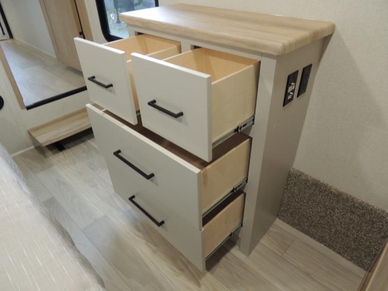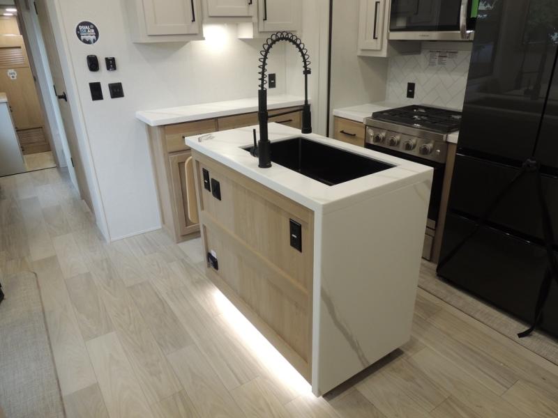 Each one of these Forest River Sierra fifth wheels are equipped with everything you need to make the most of each adventure! The underbelly armor will protect your unit's vitals from road debris and the painted two tone aerodynamic fiberglass front cap has an improved turning radius to make them easier to navigate. With an electric leveling system, you can set your unit up quick and easy then get to having fun faster than ever. The welded aluminum framed, vacuum bonded laminated superstructure will hold up through every adventure and the cambered powder coated frame comes with rust prohibitor to last longer. Each model also includes the Summit Package that comes with a king Wi-Fi extender system and Olympus antenna, a full coach water filter system, Goodyear tires with 7,000 lb. axles, and the list goes on. The interior is just as impressive with rustic wood plank linoleum, recessed residential lighting, a memory foam mattress, and mocha accent crown molding over the kitchen cabinets!