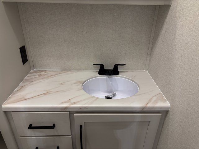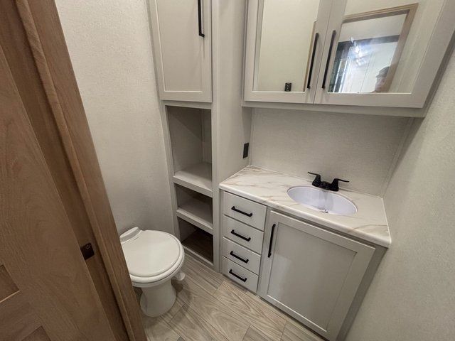 One of the standout features is the bath-and-a-half layout, perfect for guests or family. The mid-coach half bath adds convenience, while the full rear bathroom connects directly to the master suite for added privacy.
