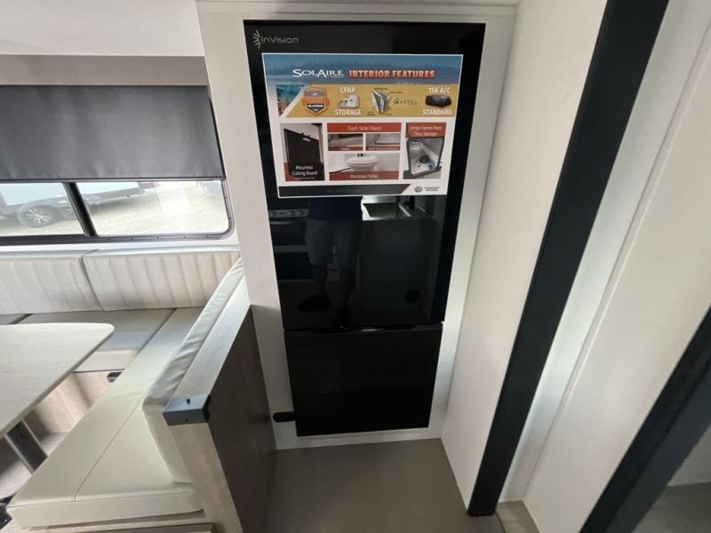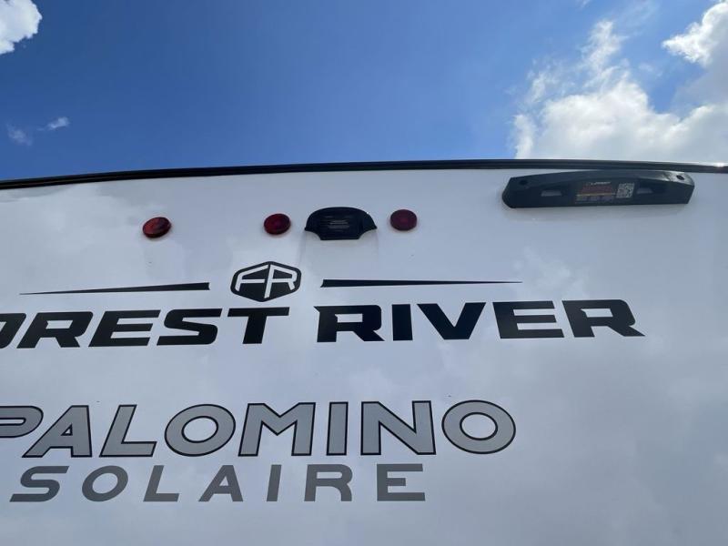 Each SolAire travel trailer by Palomino features a white gel coat exterior and an aluminum superstructure frame for lightweight towing. You will love having a power tongue jack for easy set up, plus slam latch baggage doors with magnets to make unloading easier than ever. There is also a power awning with LED lights and aluminum wheels included on the exterior. Each SolAire is constructed to last with Azdel composite, a fully laminated rear wall and roof, plus a fully enclosed and heated underbelly. The interior includes roller shades and kitchen backsplash, USB ports to keep your electronics charged, a Bluetooth stereo with speakers, and many more stand-out features!