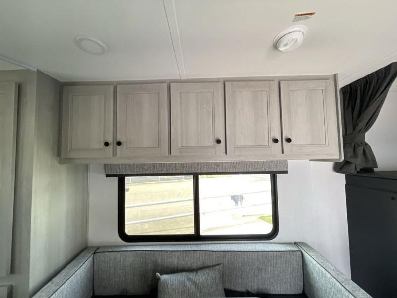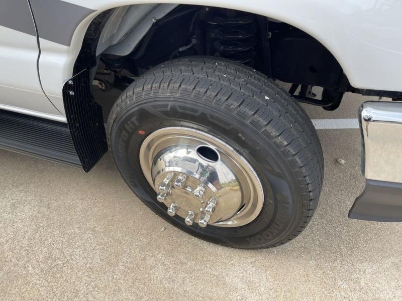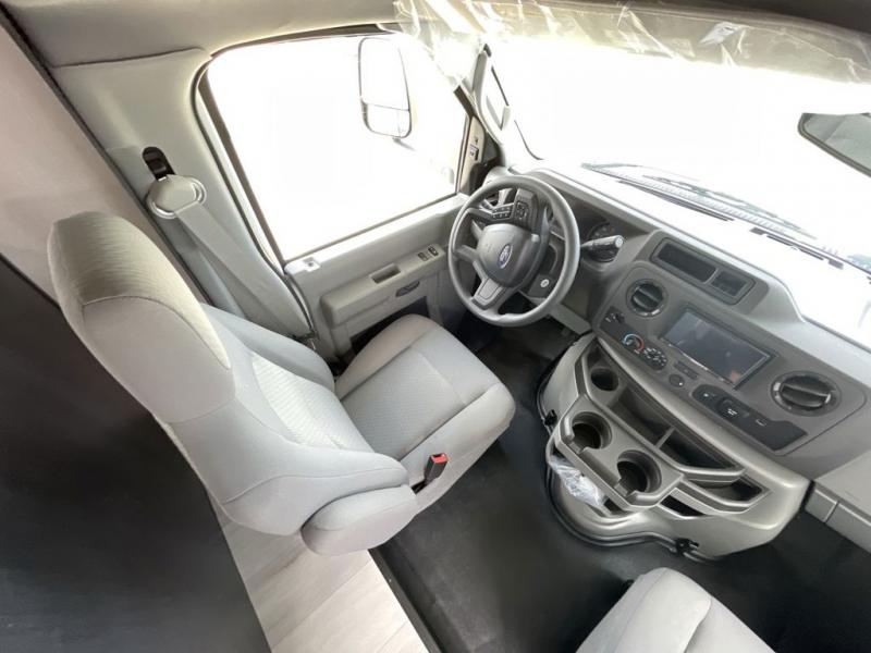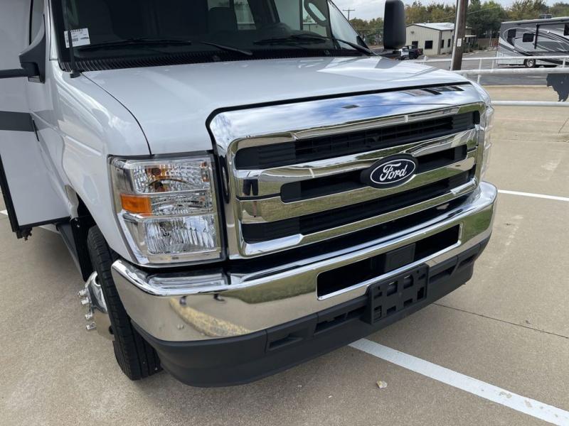 Start traveling in true luxury with this motorhome! The corner queen bed offers a comfortable night's rest, and is conveniently next to the rear corner bathroom which has a 24" x 32" shower and a vanity sink just outside it next to a wardrobe. Keep your bellies full with home cooked meals prepared with the three burner cooktop, the 10.7 cu. ft. 12V refrigerator, and use the flip-up countertop for more counter space. You can eat your meals at the U-shaped dinette and transform it into an extra sleeping space too. The 60" x 80" bunk over cab also offers a comfortable sleeping space with a 12V TV for entertainment! This model is also available with a Chevy 3500 chassis; see model 22N Chevy for more details.