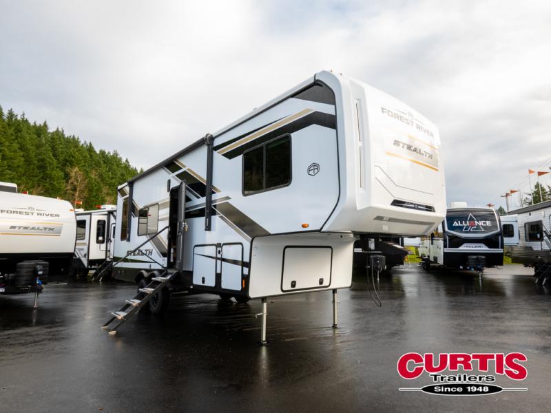Each Stealth toy hauler by Forest River is off-road approved thanks to their solid foundation and luxury features! The versatile garage areas can be used for both toy storage plus seating and sleeping spaces. There is full bath and kitchen amenities to make camping easier than ever, and you'll find ample storage space for food, gear, personal belongings and more. Each fifth wheel and travel trailer also features generator prep if you'd like to further customize your Stealth toy hauler!