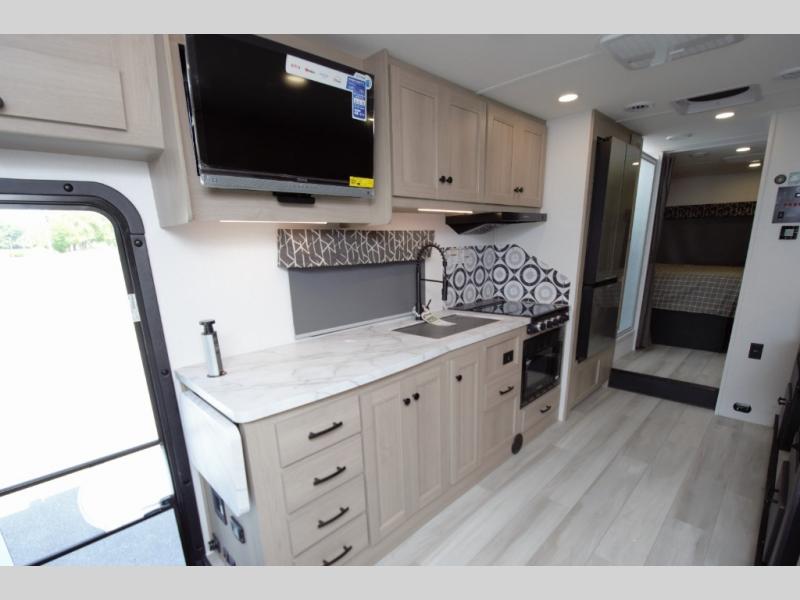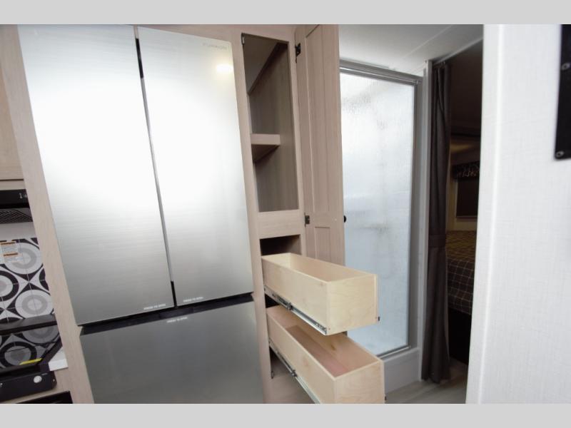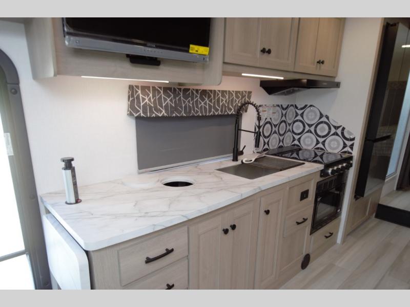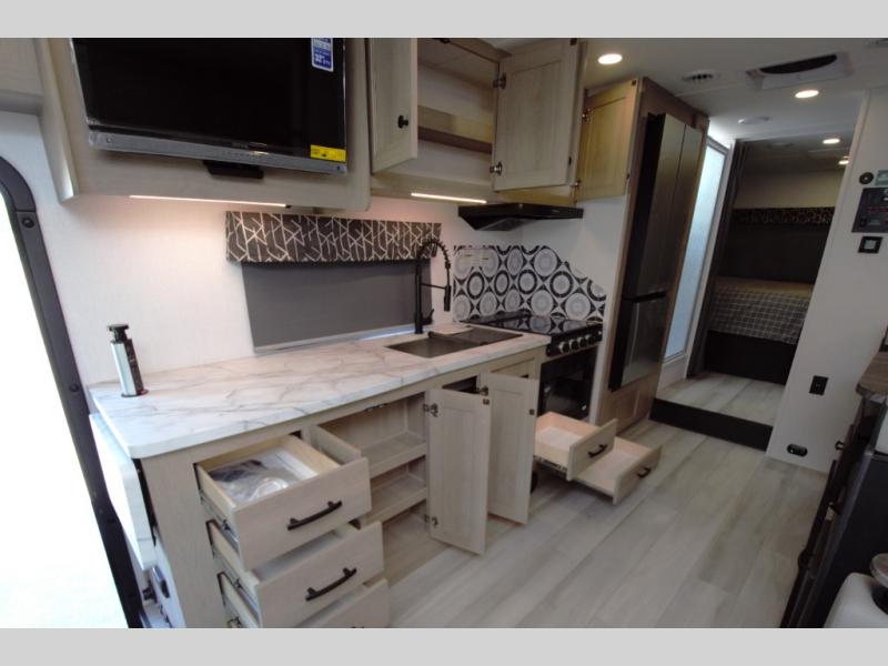 - Fully Equipped Kitchen: The complete kitchen features a convection microwave and a spacious 10.7-cubic foot refrigerator, making it easy to whip up delicious meals on the road.