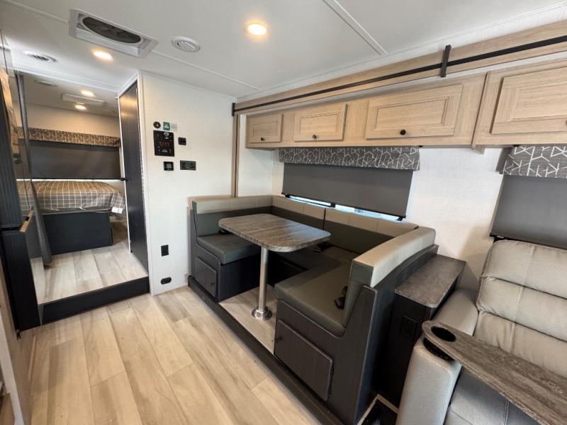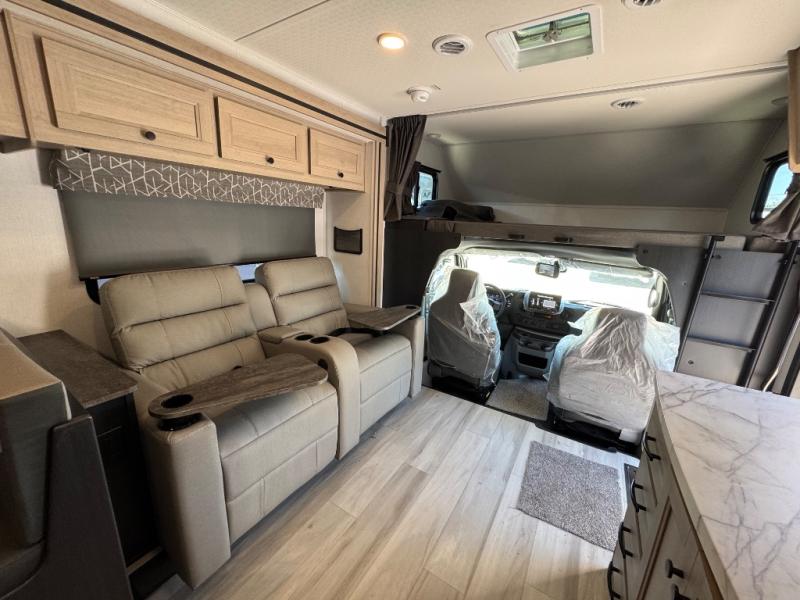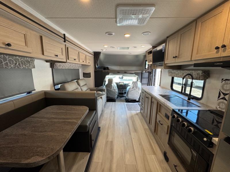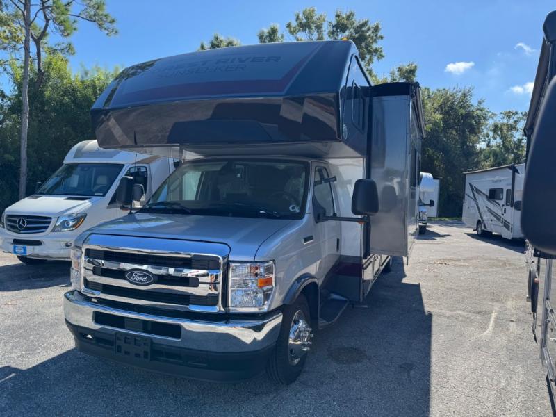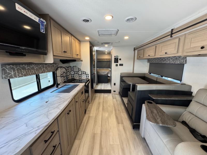 With any Sunseeker Classic Class C gas motorhome by Forest River, you will enjoy more features and quality construction at a great value! Each model comes standard with a fiberglass roof and 2" aluminum framed laminated sidewalls for maximum durability. The Winegard Air 360+ digital antenna is your all-in-one solution for your internet, TV, and FM signal needs, and you have Gateway 4G Wi-Fi capability too. The exterior has an outside shower, heated/enclosed tanks, Rotocast storage compartments, and a power awning with an LED light strip to name a few conveniences. Each drive will be made easy thanks to a 10" touchscreen CarPlay/Android radio with USB and Bluetooth, backup camera/side view cameras with a 3-way monitor, and Ultraleather seating for added comfort. You'll also love the black out roller shades, soft touch self-closing drawer guides, oxygen-infused shower head with a flexible extension, and many more interior comforts!