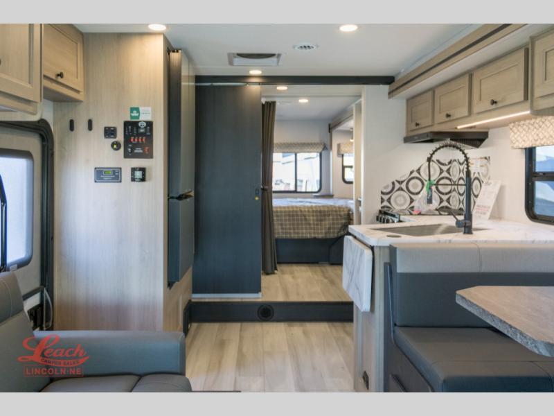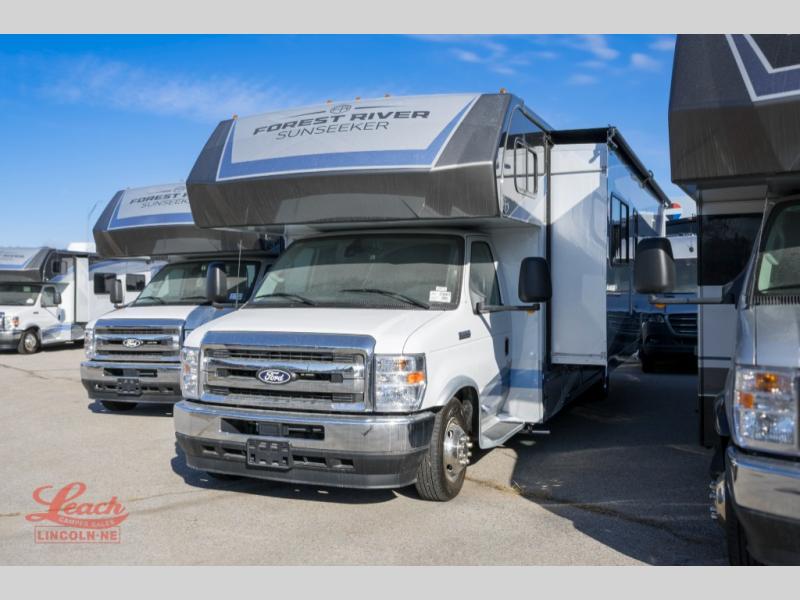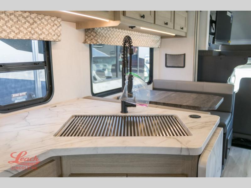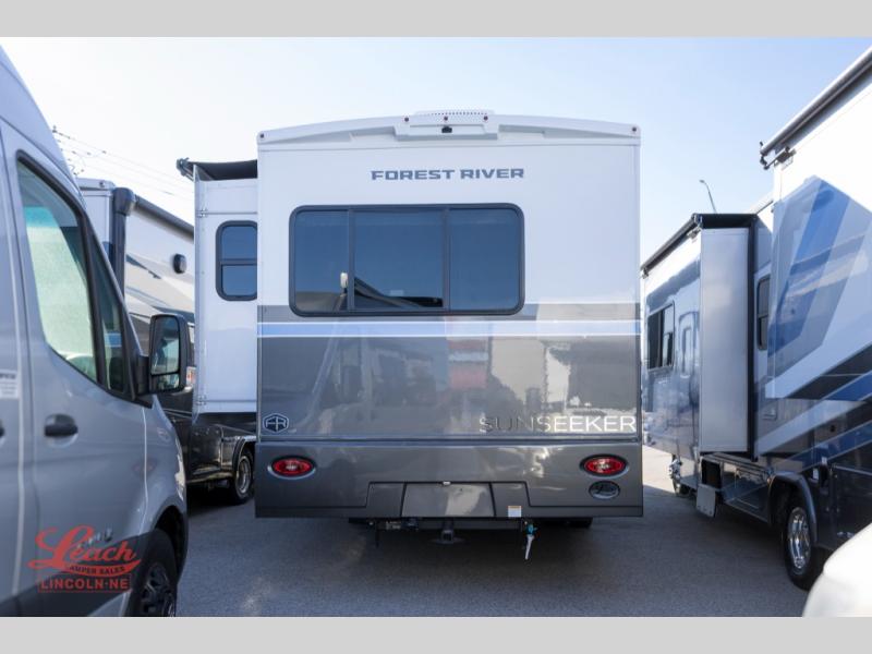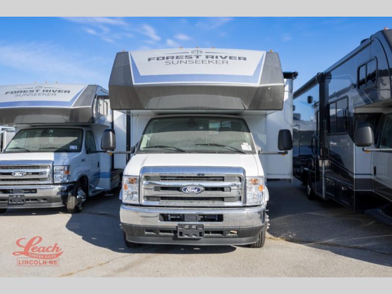 With any Sunseeker Class C gas motorhome by Forest River, you will enjoy more features and quality construction at a great value! Each model comes standard with a fiberglass roof and 2" aluminum framed laminated sidewalls for maximum durability. The Winegard Air 360+ digital antenna is your all-in-one solution for your internet, TV, and FM signal needs, and you have Gateway 4G Wi-Fi capability too. The exterior has an outside shower, heated/enclosed tanks, Rotocast storage compartments, and a power awning with an LED light strip to name a few conveniences. Each drive will be made easy thanks to a 10" touchscreen CarPlay/Android radio with USB and Bluetooth, backup camera/side view cameras with a 3-way monitor, and Ultraleather seating for added comfort. You'll also love the black out roller shades, soft touch self-closing drawer guides, oxygen-infused shower head with a flexible extension, and many more interior comforts!