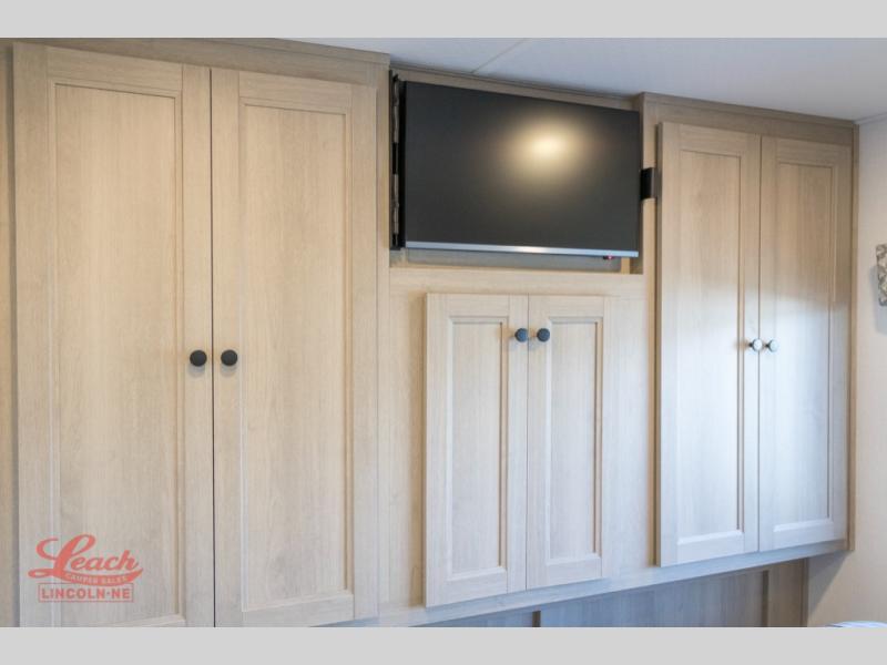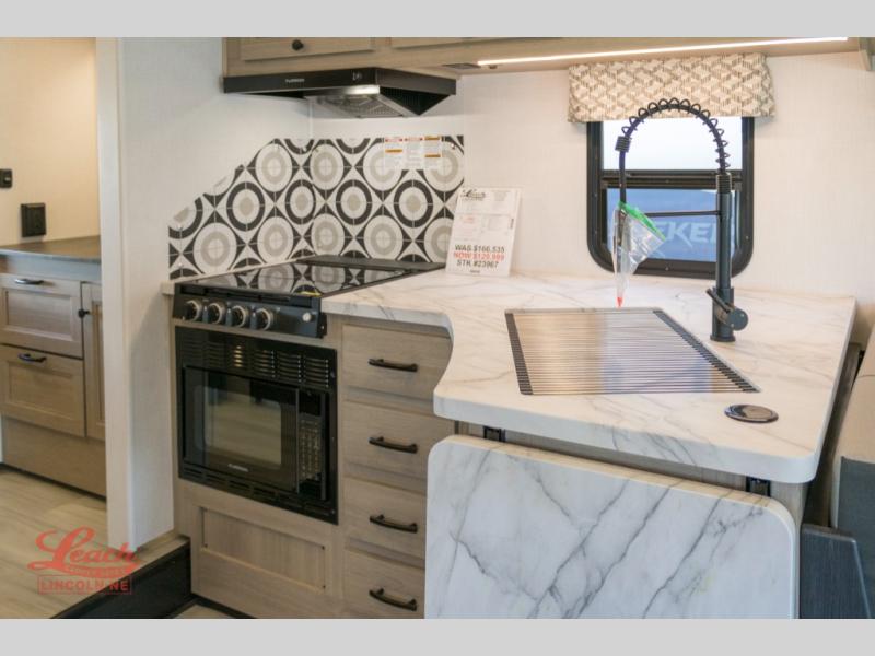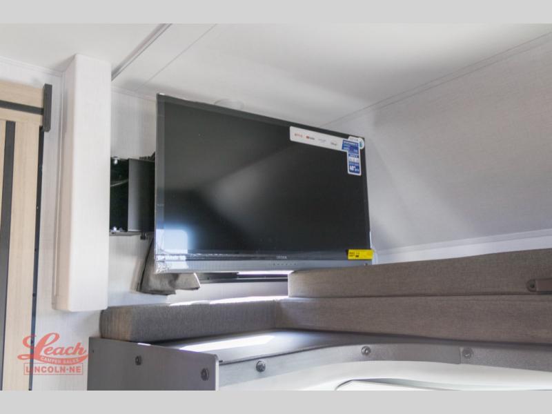 It's time to put boring vacations behind you and spend the rest of your life enjoying fun in the sun with this motorhome! You have lots of interior living space with a full-wall slide, and the rear private bedroom offers you a queen-size bed, 12V bedroom TV, linen closet, and two wardrobes. You'll be right next to the split-style bathroom when you're in the bedroom, and the kitchen is just on the other side of the bathroom. In the kitchen is where you will find the convection microwave, flip-up countertop, 10.7-cubic foot refrigerator, pantry, and three-burner range. You'll also have some lounging space with the sofa and booth dinette, and the bunk over the cab can be switched out for the optional Trekker cap with built-in entertainment and storage.