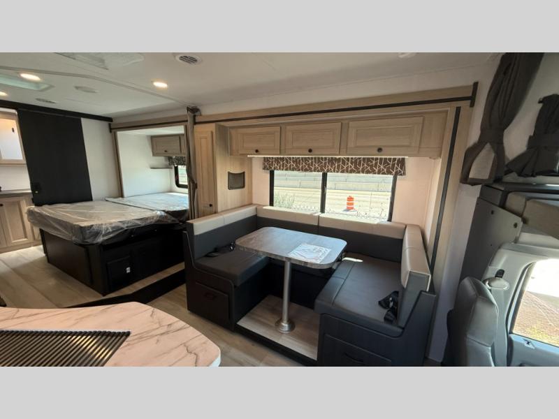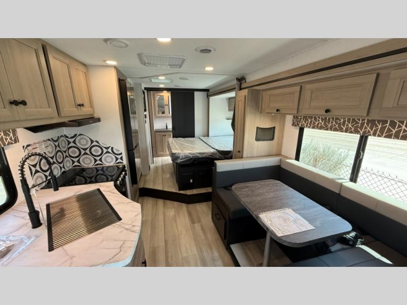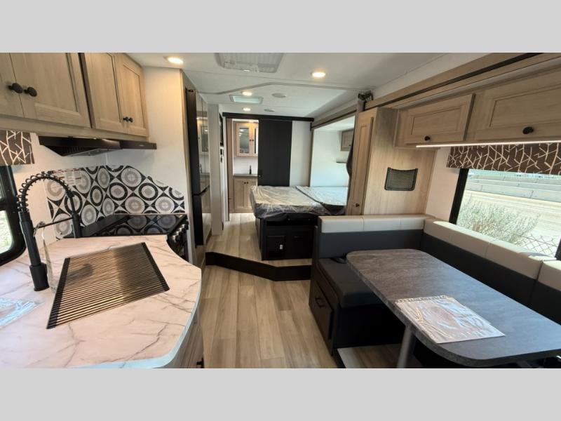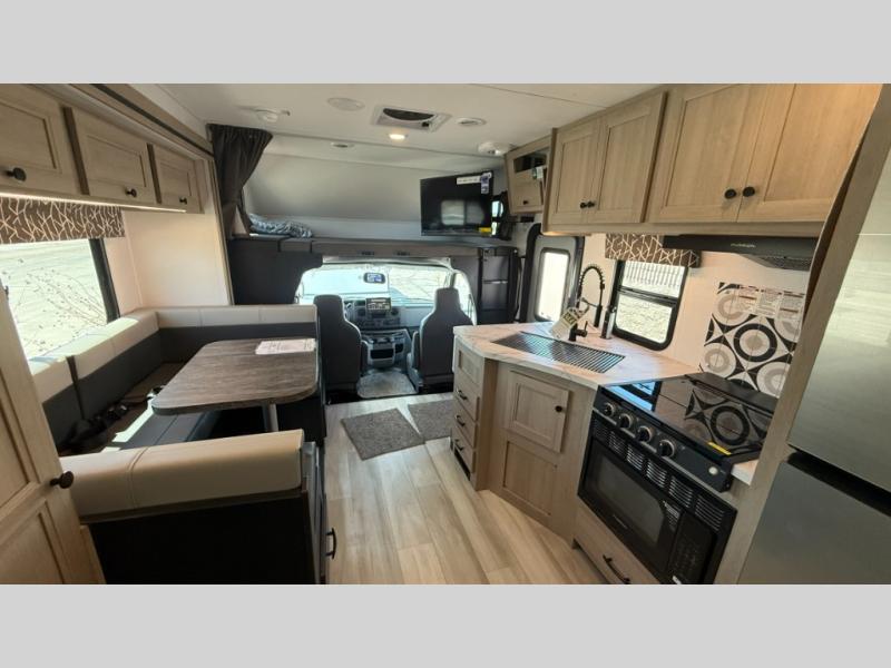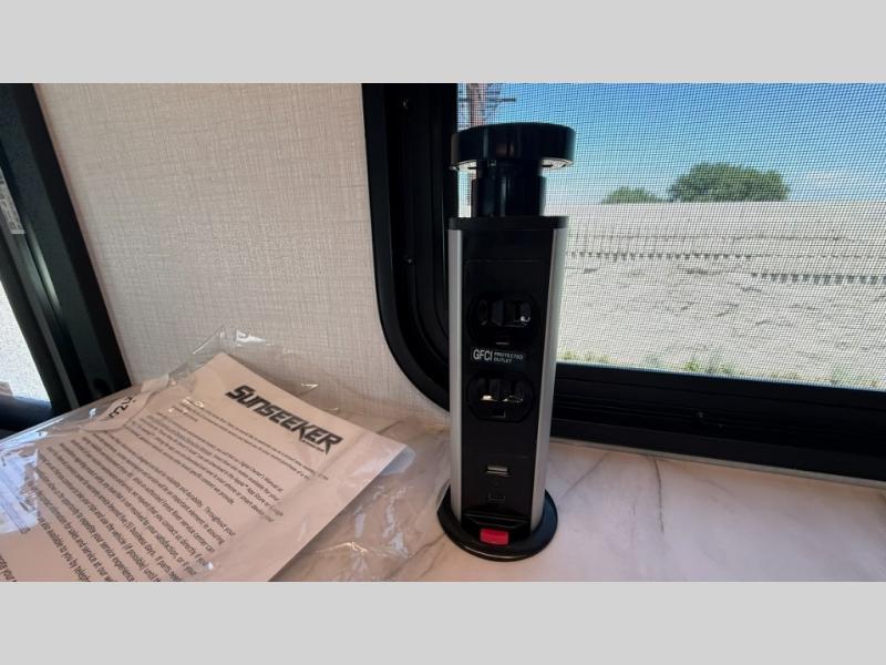 With any Sunseeker Classic Class C gas motorhome by Forest River, you will enjoy more features and quality construction at a great value! Each model comes standard with a fiberglass roof and 2" aluminum framed laminated sidewalls for maximum durability. The Winegard Air 360+ digital antenna is your all-in-one solution for your internet, TV, and FM signal needs, and you have Gateway 4G Wi-Fi capability too. The exterior has an outside shower, heated/enclosed tanks, Rotocast storage compartments, and a power awning with an LED light strip to name a few conveniences. Each drive will be made easy thanks to a 10" touchscreen CarPlay/Android radio with USB and Bluetooth, backup camera/side view cameras with a 3-way monitor, and Ultraleather seating for added comfort. You'll also love the black out roller shades, soft touch self-closing drawer guides, oxygen-infused shower head with a flexible extension, and many more interior comforts!