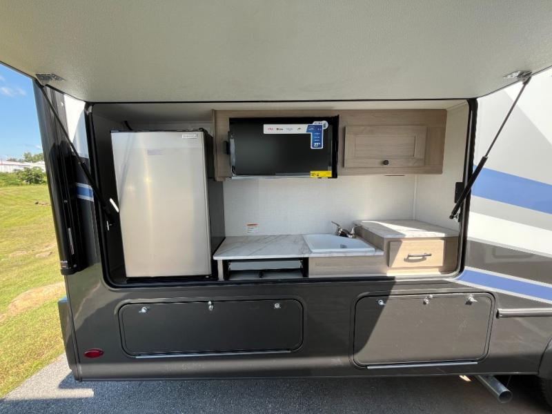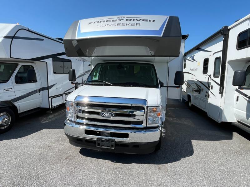 With any Sunseeker Classic Class C gas motorhome by Forest River, you will enjoy more features and quality construction at a great value! Each model comes standard with a fiberglass roof and 2" aluminum framed laminated sidewalls for maximum durability. The Winegard Air 360+ digital antenna is your all-in-one solution for your internet, TV, and FM signal needs, and you have Gateway 4G Wi-Fi capability too. The exterior has an outside shower, heated/enclosed tanks, Rotocast storage compartments, and a power awning with an LED light strip to name a few conveniences. Each drive will be made easy thanks to a 10" touchscreen CarPlay/Android radio with USB and Bluetooth, backup camera/side view cameras with a 3-way monitor, and Ultraleather seating for added comfort. You'll also love the black out roller shades, soft touch self-closing drawer guides, oxygen-infused shower head with a flexible extension, and many more interior comforts!