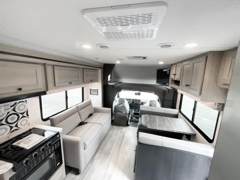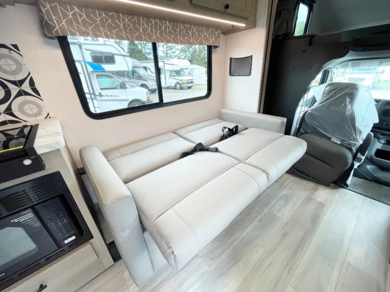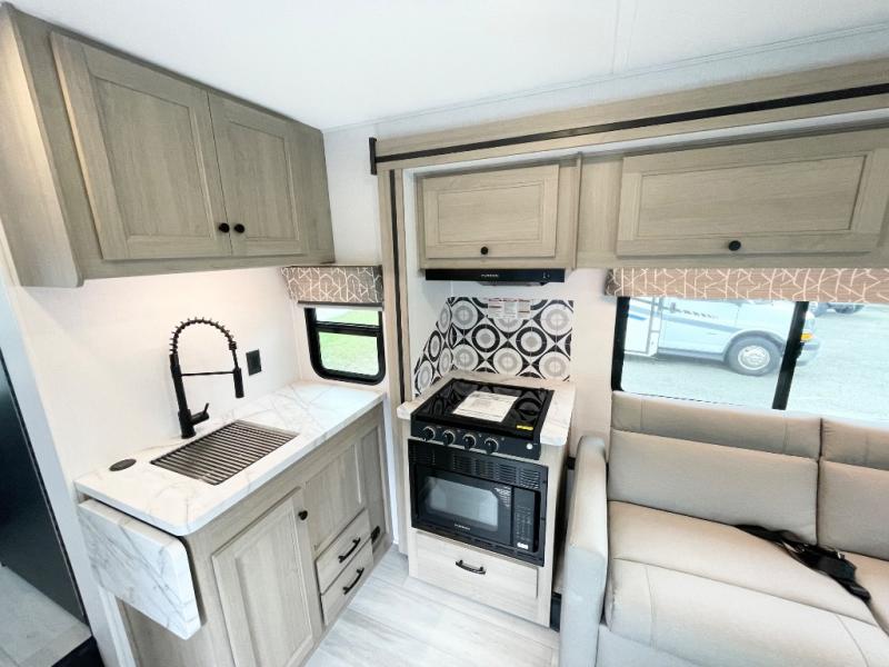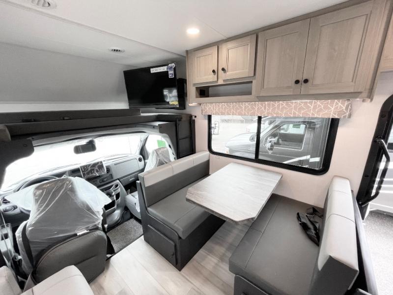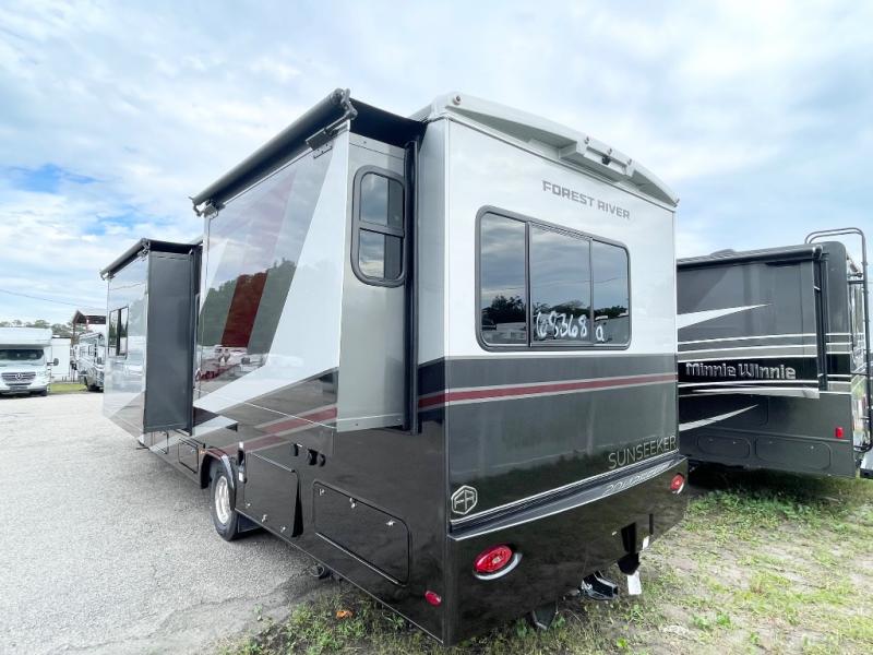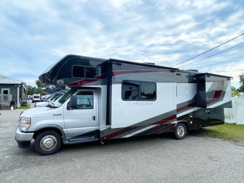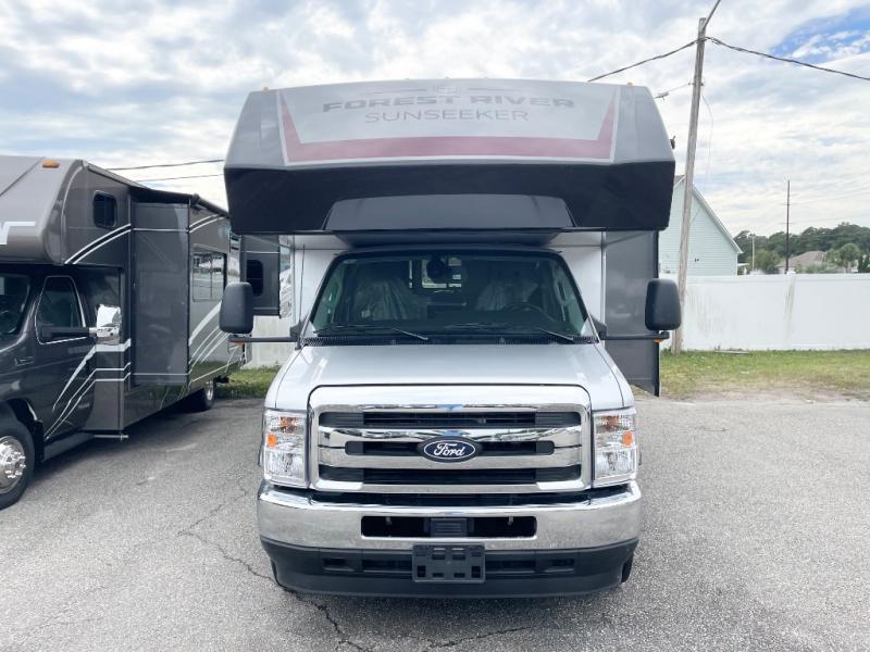 With any Sunseeker Classic Class C gas motorhome by Forest River, you will enjoy more features and quality construction at a great value! Each model comes standard with a fiberglass roof and 2" aluminum framed laminated sidewalls for maximum durability. The Winegard Air 360+ digital antenna is your all-in-one solution for your internet, TV, and FM signal needs, and you have Gateway 4G Wi-Fi capability too. The exterior has an outside shower, heated/enclosed tanks, Rotocast storage compartments, and a power awning with an LED light strip to name a few conveniences. Each drive will be made easy thanks to a 10" touchscreen CarPlay/Android radio with USB and Bluetooth, backup camera/side view cameras with a 3-way monitor, and Ultraleather seating for added comfort. You'll also love the black out roller shades, soft touch self-closing drawer guides, oxygen-infused shower head with a flexible extension, and many more interior comforts!