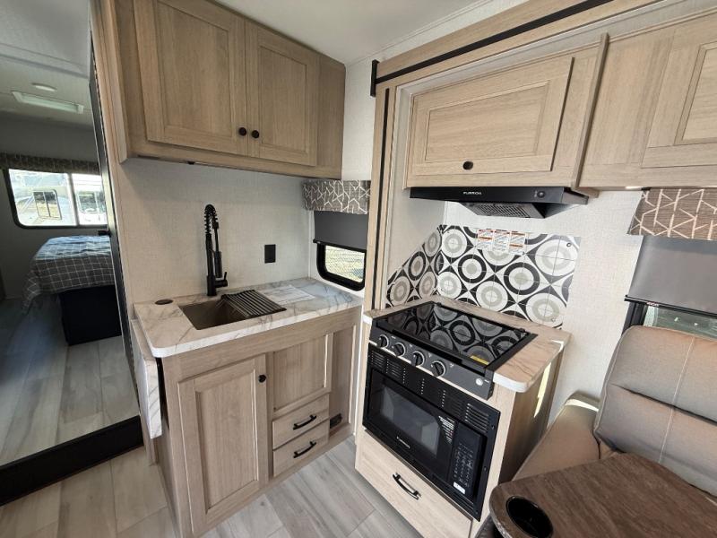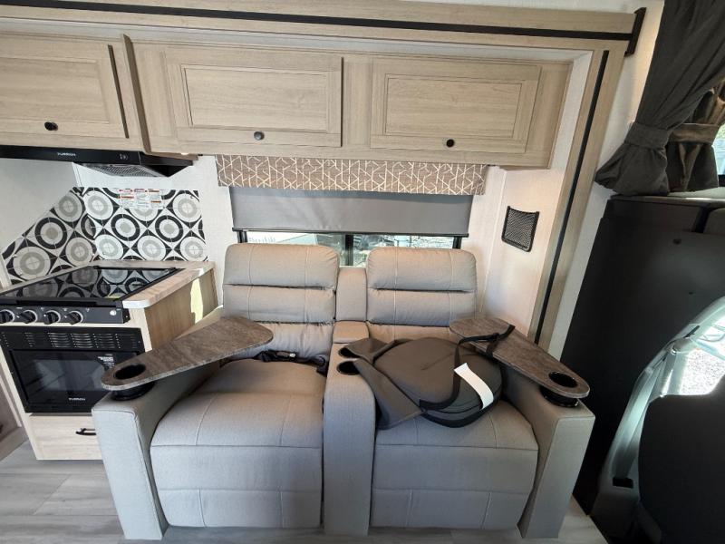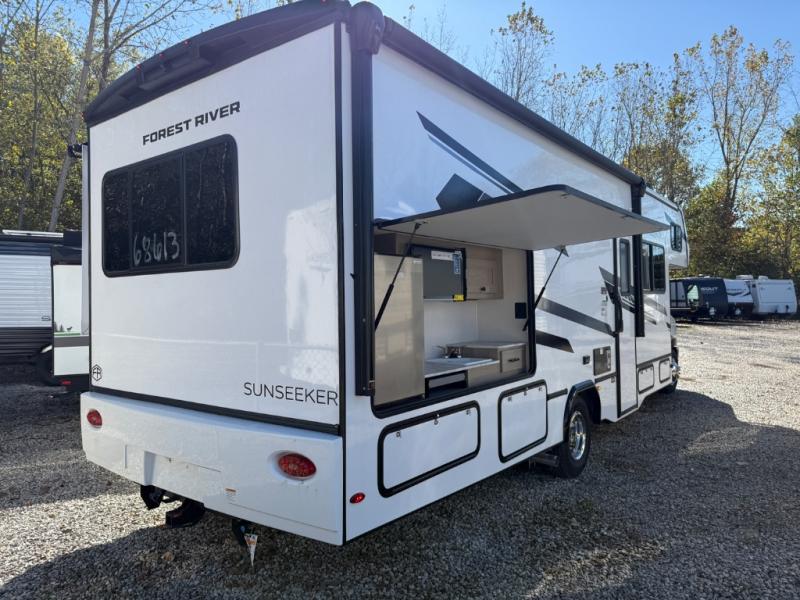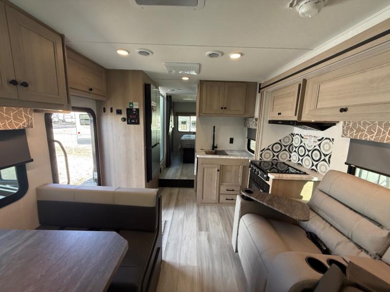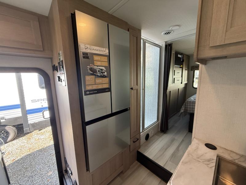 With any Sunseeker Classic Class C gas motorhome by Forest River, you will enjoy more features and quality construction at a great value! Each model comes standard with a fiberglass roof and 2" aluminum framed laminated sidewalls for maximum durability. The Winegard Air 360+ digital antenna is your all-in-one solution for your internet, TV, and FM signal needs, and you have Gateway 4G Wi-Fi capability too. The exterior has an outside shower, heated/enclosed tanks, Rotocast storage compartments, and a power awning with an LED light strip to name a few conveniences. Each drive will be made easy thanks to a 10" touchscreen CarPlay/Android radio with USB and Bluetooth, backup camera/side view cameras with a 3-way monitor, and Ultraleather seating for added comfort. You'll also love the black out roller shades, soft touch self-closing drawer guides, oxygen-infused shower head with a flexible extension, and many more interior comforts!