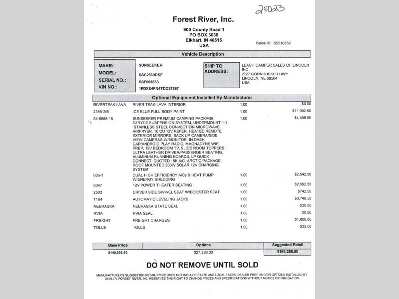 Forest River Sunseeker Classic Class C gas motorhome 2860DS highlights: