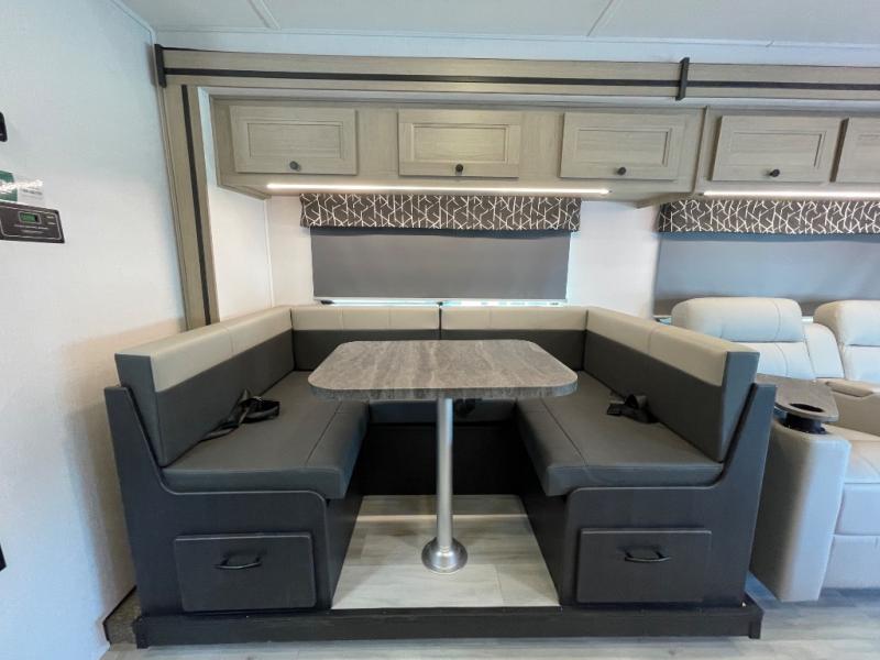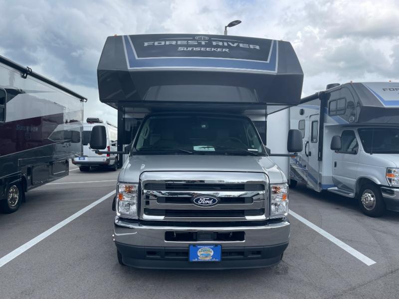 With any Sunseeker Classic Class C gas motorhome by Forest River, you will enjoy more features and quality construction at a great value! Each model comes standard with a fiberglass roof and 2" aluminum framed laminated sidewalls for maximum durability. The Winegard Air 360+ digital antenna is your all-in-one solution for your internet, TV, and FM signal needs, and you have Gateway 4G Wi-Fi capability too. The exterior has an outside shower, heated/enclosed tanks, Rotocast storage compartments, and a power awning with an LED light strip to name a few conveniences. Each drive will be made easy thanks to a 10" touchscreen CarPlay/Android radio with USB and Bluetooth, backup camera/side view cameras with a 3-way monitor, and Ultraleather seating for added comfort. You'll also love the black out roller shades, soft touch self-closing drawer guides, oxygen-infused shower head with a flexible extension, and many more interior comforts!