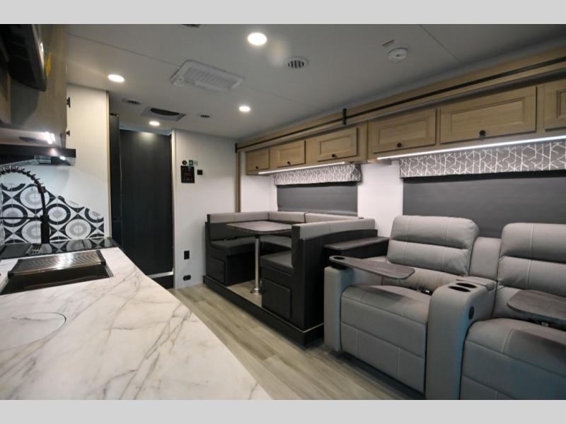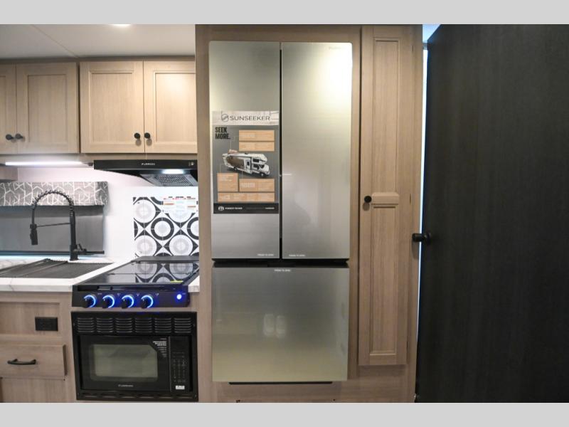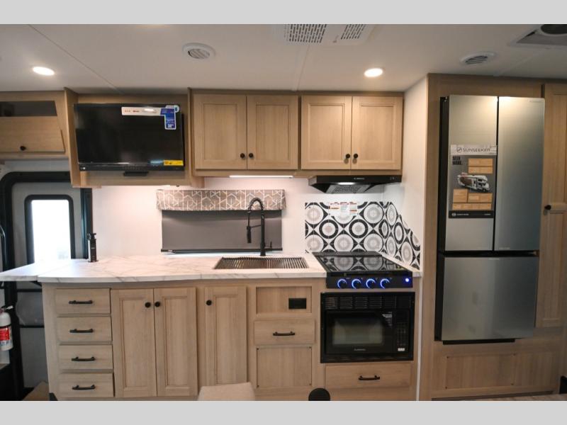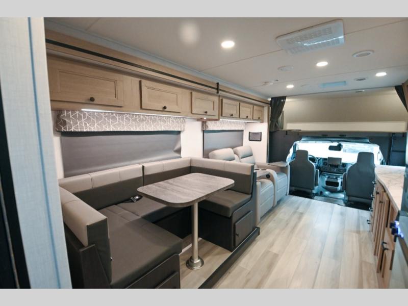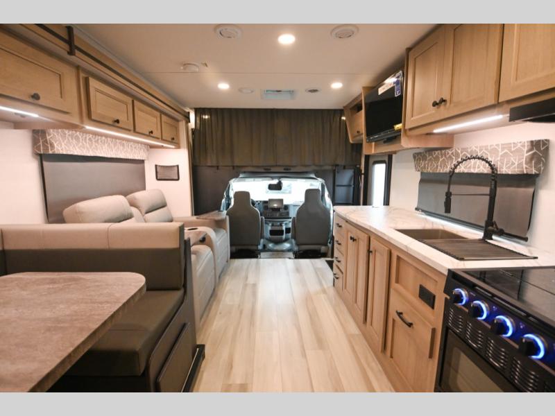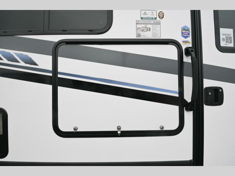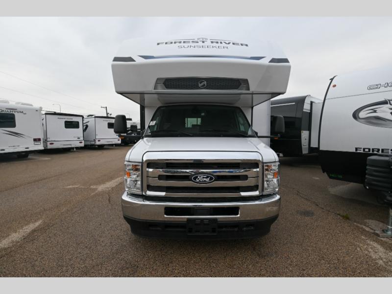 With any Sunseeker Classic Class C gas motorhome by Forest River, you will enjoy more features and quality construction at a great value! Each model comes standard with a fiberglass roof and 2" aluminum framed laminated sidewalls for maximum durability. The Winegard Air 360+ digital antenna is your all-in-one solution for your internet, TV, and FM signal needs, and you have Gateway 4G Wi-Fi capability too. The exterior has an outside shower, heated/enclosed tanks, Rotocast storage compartments, and a power awning with an LED light strip to name a few conveniences. Each drive will be made easy thanks to a 10" touchscreen CarPlay/Android radio with USB and Bluetooth, backup camera/side view cameras with a 3-way monitor, and Ultraleather seating for added comfort. You'll also love the black out roller shades, soft touch self-closing drawer guides, oxygen-infused shower head with a flexible extension, and many more interior comforts!