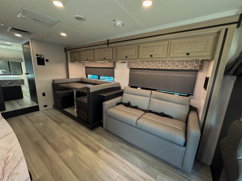 With any Sunseeker Classic Class C gas motorhome by Forest River, you will enjoy more features and quality construction at a great value! Each model comes standard with a fiberglass roof and 2" aluminum framed laminated sidewalls for maximum durability. The Winegard Air 360+ digital antenna is your all-in-one solution for your internet, TV, and FM signal needs, and you have Gateway 4G Wi-Fi capability too. The exterior has an outside shower, heated/enclosed tanks, Rotocast storage compartments, and a power awning with an LED light strip to name a few conveniences. Each drive will be made easy thanks to a 10" touchscreen CarPlay/Android radio with USB and Bluetooth, backup camera/side view cameras with a 3-way monitor, and Ultraleather seating for added comfort. You'll also love the black out roller shades, soft touch self-closing drawer guides, oxygen-infused shower head with a flexible extension, and many more interior comforts!