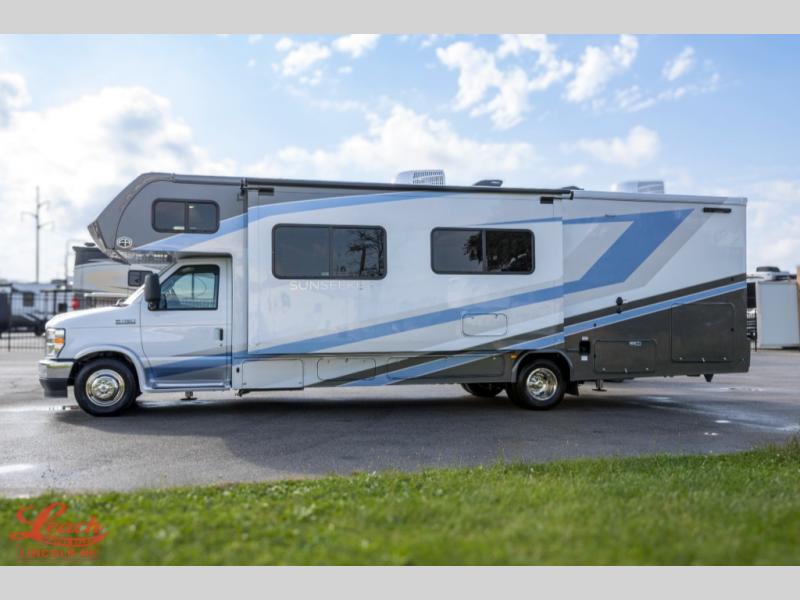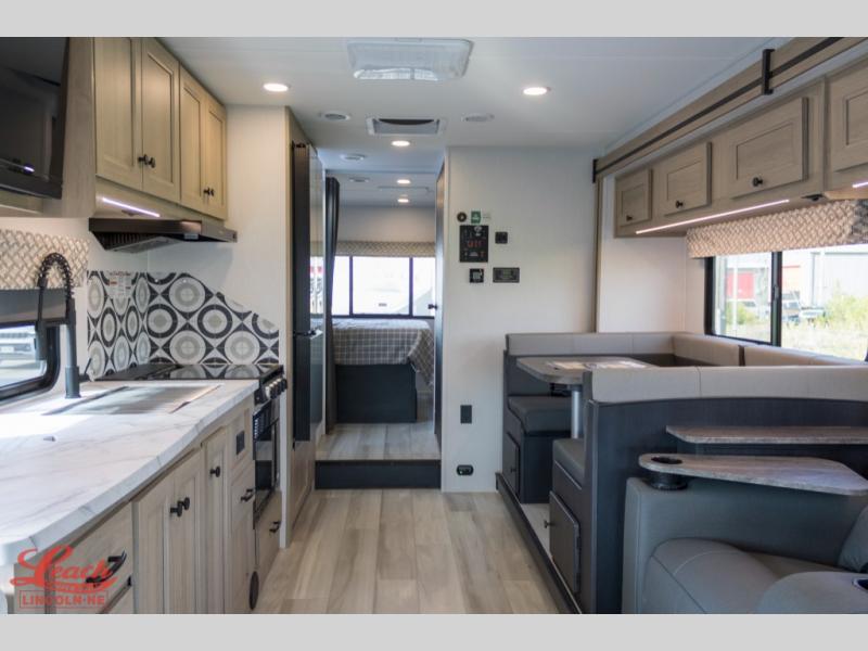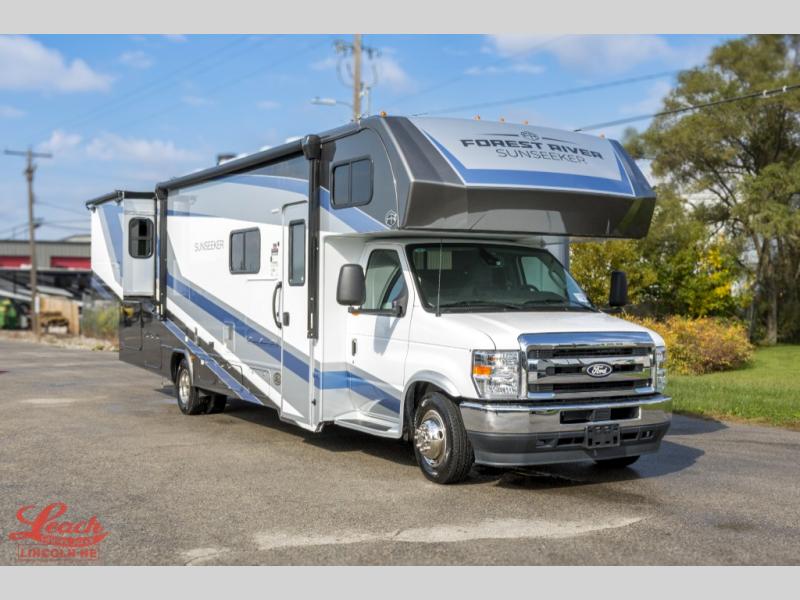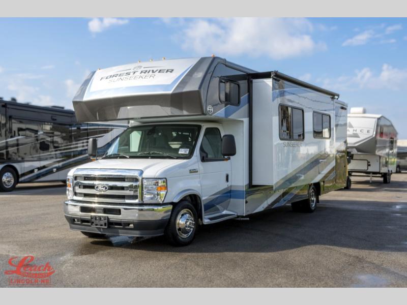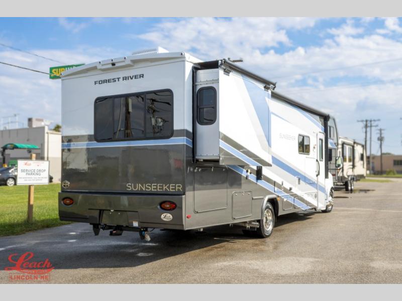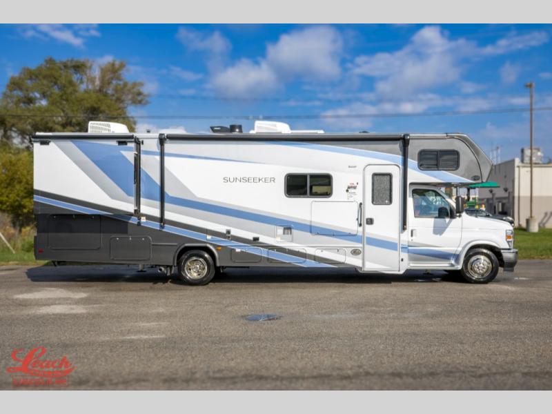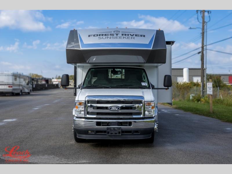 With any Sunseeker Classic Class C gas motorhome by Forest River, you will enjoy more features and quality construction at a great value! Each model comes standard with a fiberglass roof and 2" aluminum framed laminated sidewalls for maximum durability. The Winegard Air 360+ digital antenna is your all-in-one solution for your internet, TV, and FM signal needs, and you have Gateway 4G Wi-Fi capability too. The exterior has an outside shower, heated/enclosed tanks, Rotocast storage compartments, and a power awning with an LED light strip to name a few conveniences. Each drive will be made easy thanks to a 10" touchscreen CarPlay/Android radio with USB and Bluetooth, backup camera/side view cameras with a 3-way monitor, and Ultraleather seating for added comfort. You'll also love the black out roller shades, soft touch self-closing drawer guides, oxygen-infused shower head with a flexible extension, and many more interior comforts!