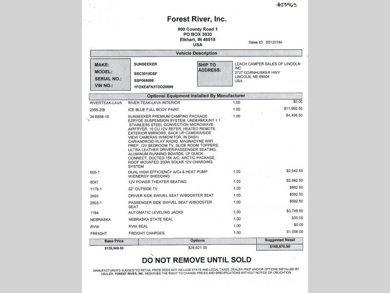 Forest River Sunseeker Classic Class C gas motorhome 3010DS highlights: