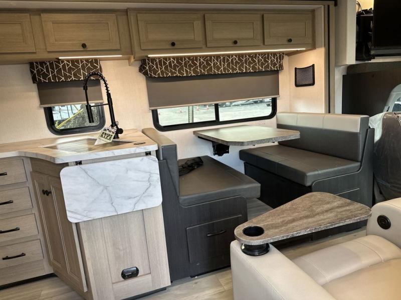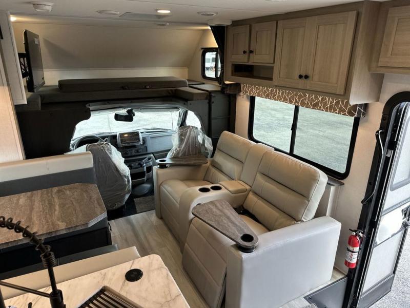 With any Sunseeker Classic Class C gas motorhome by Forest River, you will enjoy more features and quality construction at a great value! Each model comes standard with a fiberglass roof and 2" aluminum framed laminated sidewalls for maximum durability. The Winegard Air 360+ digital antenna is your all-in-one solution for your internet, TV, and FM signal needs, and you have Gateway 4G Wi-Fi capability too. The exterior has an outside shower, heated/enclosed tanks, Rotocast storage compartments, and a power awning with an LED light strip to name a few conveniences. Each drive will be made easy thanks to a 10" touchscreen CarPlay/Android radio with USB and Bluetooth, backup camera/side view cameras with a 3-way monitor, and Ultraleather seating for added comfort. You'll also love the black out roller shades, soft touch self-closing drawer guides, oxygen-infused shower head with a flexible extension, and many more interior comforts!