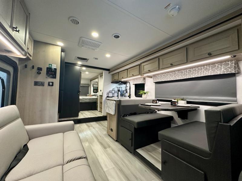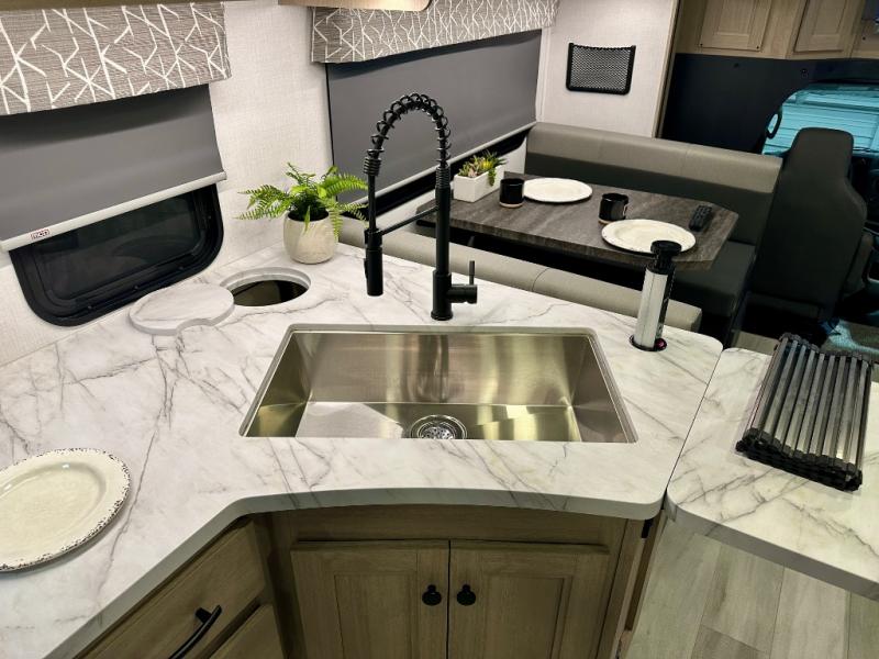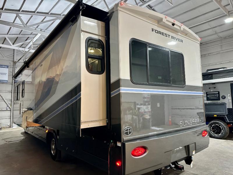 With any Sunseeker Classic Class C gas motorhome by Forest River, you will enjoy more features and quality construction at a great value! Each model comes standard with a fiberglass roof and 2" aluminum framed laminated sidewalls for maximum durability. The Winegard Air 360+ digital antenna is your all-in-one solution for your internet, TV, and FM signal needs, and you have Gateway 4G Wi-Fi capability too. The exterior has an outside shower, heated/enclosed tanks, Rotocast storage compartments, and a power awning with an LED light strip to name a few conveniences. Each drive will be made easy thanks to a 10" touchscreen CarPlay/Android radio with USB and Bluetooth, backup camera/side view cameras with a 3-way monitor, and Ultraleather seating for added comfort. You'll also love the black out roller shades, soft touch self-closing drawer guides, oxygen-infused shower head with a flexible extension, and many more interior comforts!