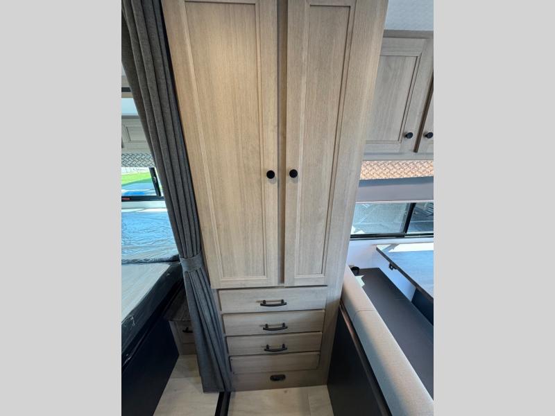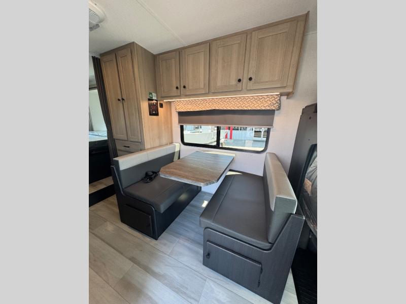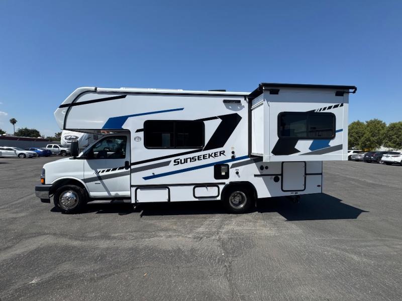 Don't forget to pack your sense of adventure when you load up this Sunseeker LE Class C gas motorhome! You'll have plenty of room on the interior to pack some belongings away in the two large storage drawers in the booth dinette, in overhead cabinets, as well as in the pantry and wardrobe. In the kitchen there is a cordless 12V charging plate that you can use to fill your phones with power, and the convection microwave will make meals super easily. An overhead bunk ladder lets you get to the 60" x 80" bunk over the cab without much effort, and you also have a queen-size bed with wedge mattress in the back slide for a great night of sleep. Wake up in the morning and grab a cold glass of juice from the 10.7-cubic foot refrigerator before starting off on your day of hiking and sightseeing.