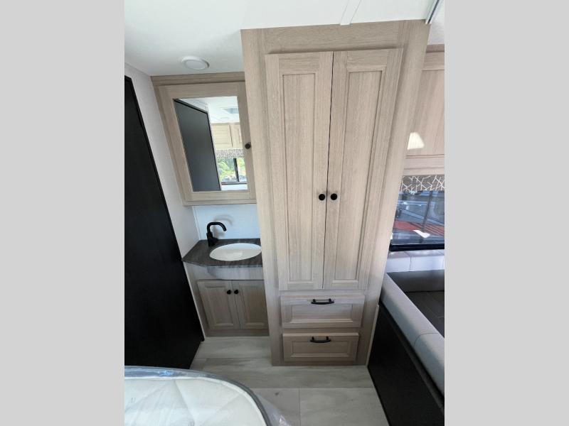 You'll want to plan more trips with this Sunseeker LE Class C gas motorhome! The queen-size bed can be sectioned off into a semi-private bedroom when you draw the privacy curtain, and the bathroom is also included in this space, so this creates a makeshift master suite. The U-shaped dinette has four seatbelts for traveling, and it also has two large storage drawers for keeping your board games and kitchen supplies hidden away. The kitchen includes a recessed three-burner range that you can use whenever you want to fry up some pancakes, and there is a convection microwave that will allow you to prepare fast meals. A cordless 12V charging plate is also included in the kitchen, and it allows you to charge your electronic devices.
