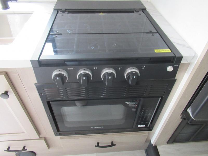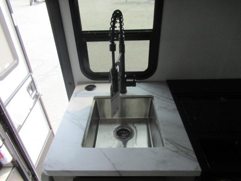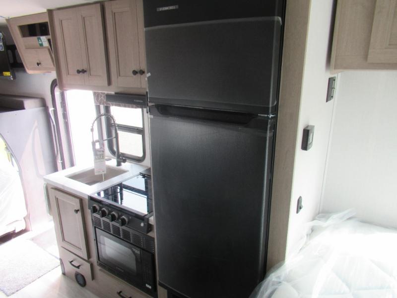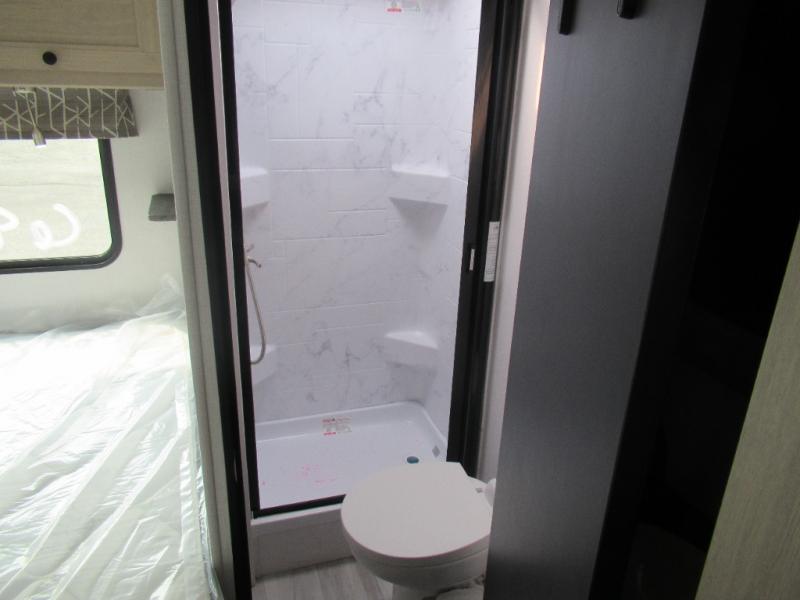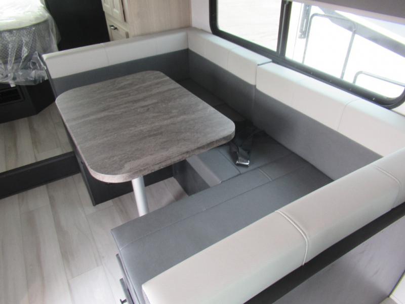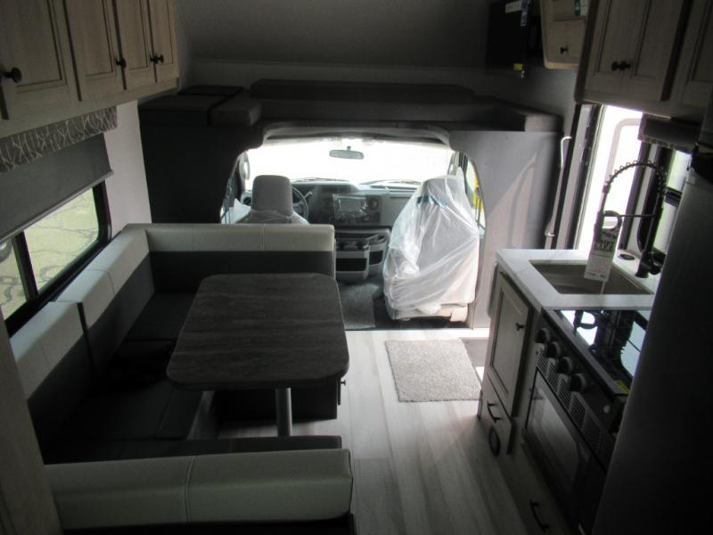 You'll want to plan more trips with this Sunseeker LE Class C gas motorhome! The queen-size bed can be sectioned off into a semi-private bedroom when you draw the privacy curtain, and the bathroom is also included in this space, so this creates a makeshift master suite. The U-shaped dinette has four seatbelts for traveling, and it also has two large storage drawers for keeping your board games and kitchen supplies hidden away. The kitchen includes a recessed three-burner range that you can use whenever you want to fry up some pancakes, and there is a convection microwave that will allow you to prepare fast meals. A cordless 12V charging plate is also included in the kitchen, and it allows you to charge your electronic devices.