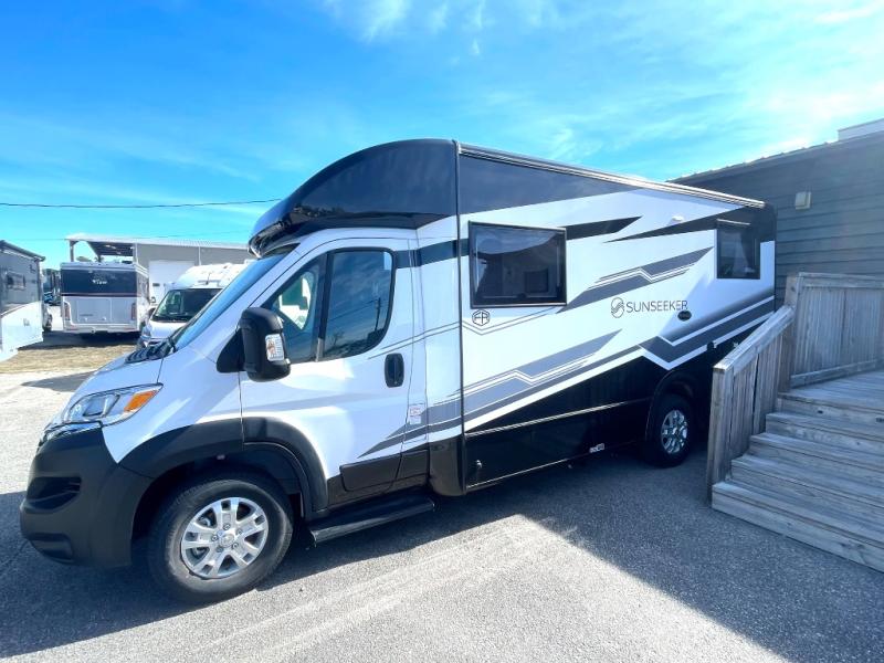 The powerful, yet compact Sunseeker PM by Forest River features a smart, versatile design for maximum space inside! This Class C gas coach sits on the Dodge ProMaster chassis to easily power your adventures. You will appreciate the durable construction that features 2" aluminum framed laminated sidewalls, a one-piece fiberglass front cap, aluminum running boards and block foam insulation. The 10" touch screen, keyless entry, plus backup camera/side view cameras with a 3-way monitor is sure to be a hit with the driver. Inside, you'll enjoy blackout shades, a Maxx Air multi-speed power fan with a cover, a 12V USB charging station, and an oxygen-infused showerhead with a flexible extension for added comfort!