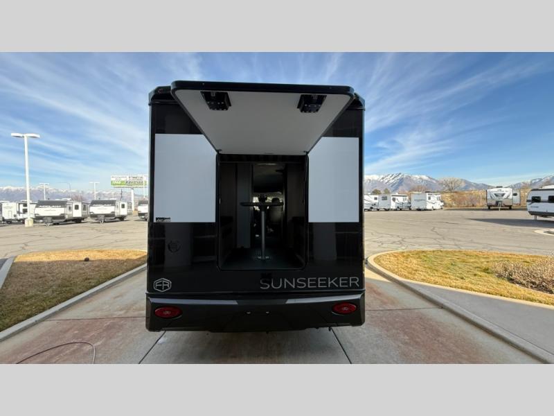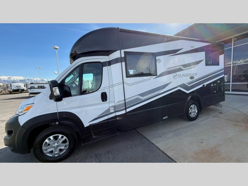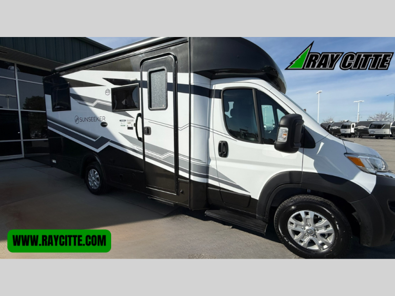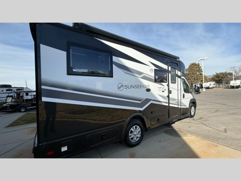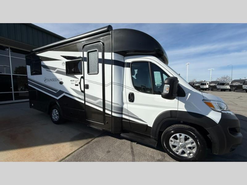 The powerful, yet compact Sunseeker PM by Forest River features a smart, versatile design for maximum space inside! This Class C gas coach sits on the Dodge ProMaster chassis to easily power your adventures. You will appreciate the durable construction that features 2" aluminum framed laminated sidewalls, a one-piece fiberglass front cap, aluminum running boards and block foam insulation. The 10" touch screen, keyless entry, plus backup camera/side view cameras with a 3-way monitor is sure to be a hit with the driver. Inside, you'll enjoy blackout shades, a Maxx Air multi-speed power fan with a cover, a 12V USB charging station, and an oxygen-infused showerhead with a flexible extension for added comfort!