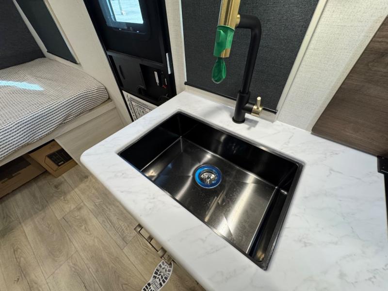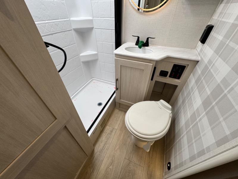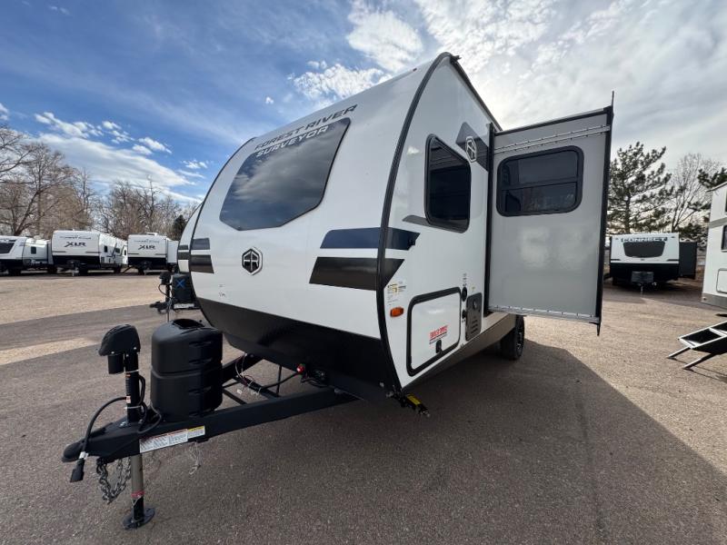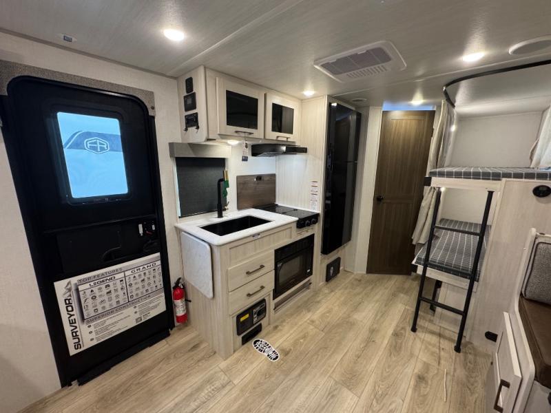 With any Surveyor Legend travel trailer by Forest River you will enjoy quality craftsmanship, convenient amenities, and at-home comforts. The Azdel composite walls provide a longer-lasting trailer, and the power tongue jack with hitch light makes getting back on the road quick and easy. There are also Goodyear® tires and a tire pressure monitoring system (TPMS) for more confident, hassle-free towing. Each model is built with thoughtful details like slam-latch exterior baggage doors and an automotive-style tinted front windshield that gives the front cap a sleek look while letting in natural light. You’ll appreciate camping with a tankless water heater for endless hot showers, a 2" rear accessory hitch to bring bikes or extra gear along, plus a central vacuum system that helps keep your easy-to-clean interior looking fresh.