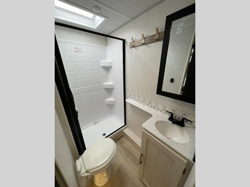 With any Surveyor Legend travel trailer by Forest River you will enjoy quality craftsmanship, convenient amenities, and at-home comforts. The Azdel composite walls provide a longer-lasting trailer, and the power tongue jack with a hitch light will get you back on the road in no-time. There are also Goodyear tires and a tire pressure monitoring system for hassle-free towing. Each model includes the Surveyor Legend Package that comes standard with oversized dinette storage access doors, front slam latch baggage doors, plus an automotive style tinted front windshield. You'll appreciate camping with a tankless water heater for endless hot showers, a 2" accessory hitch to bring bikes along, plus carpet-free interiors and a central vacuum system for easy clean up.