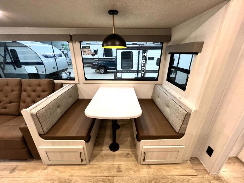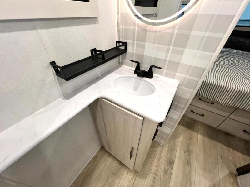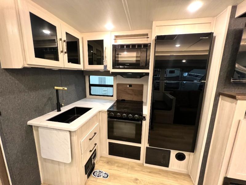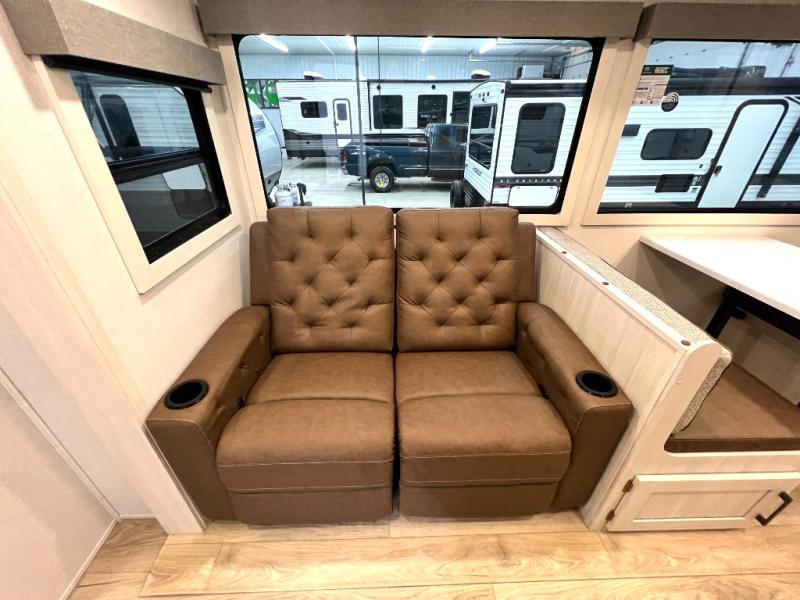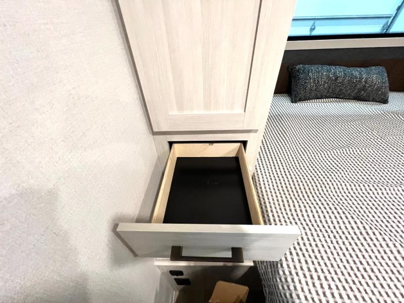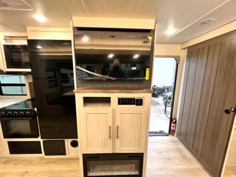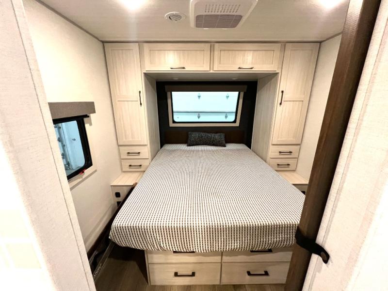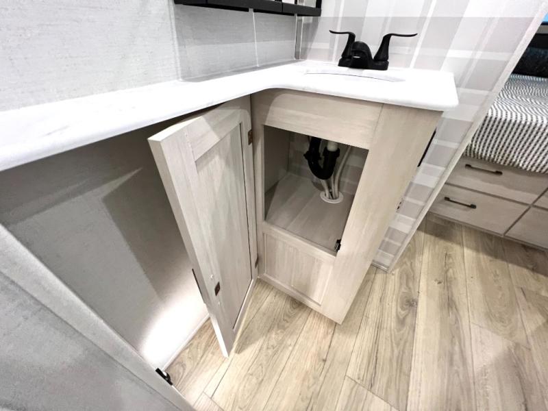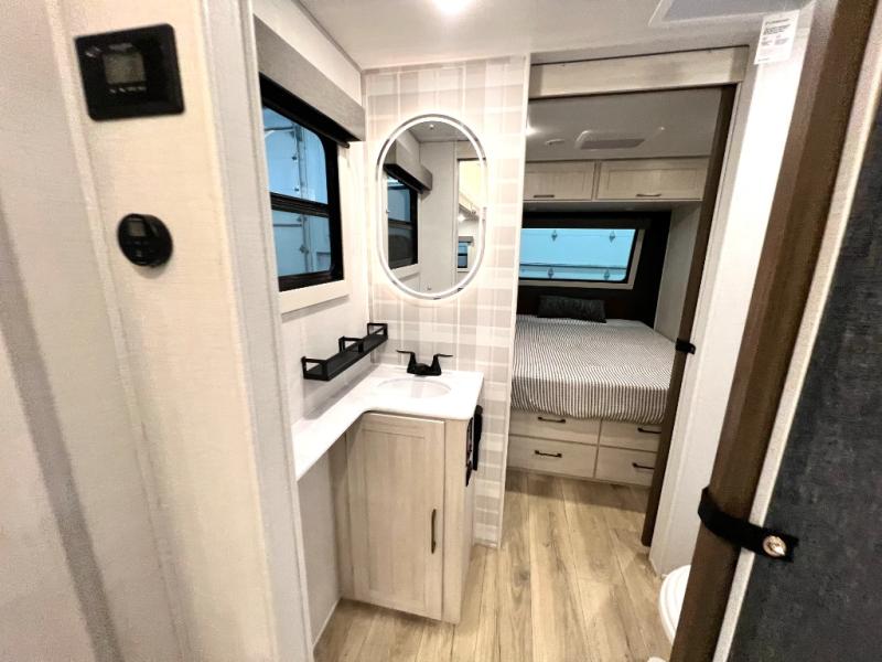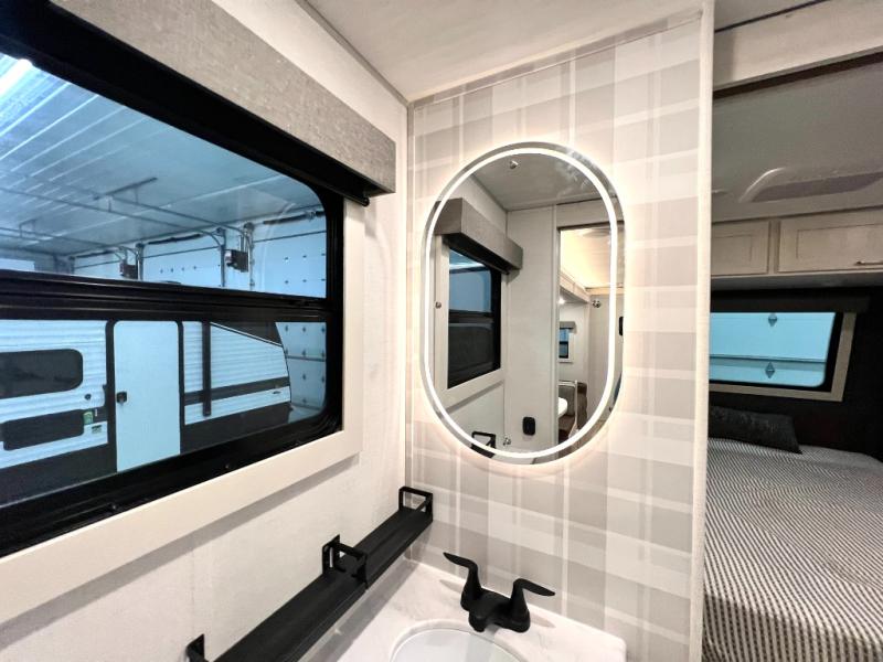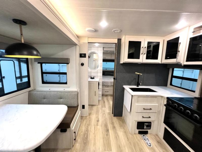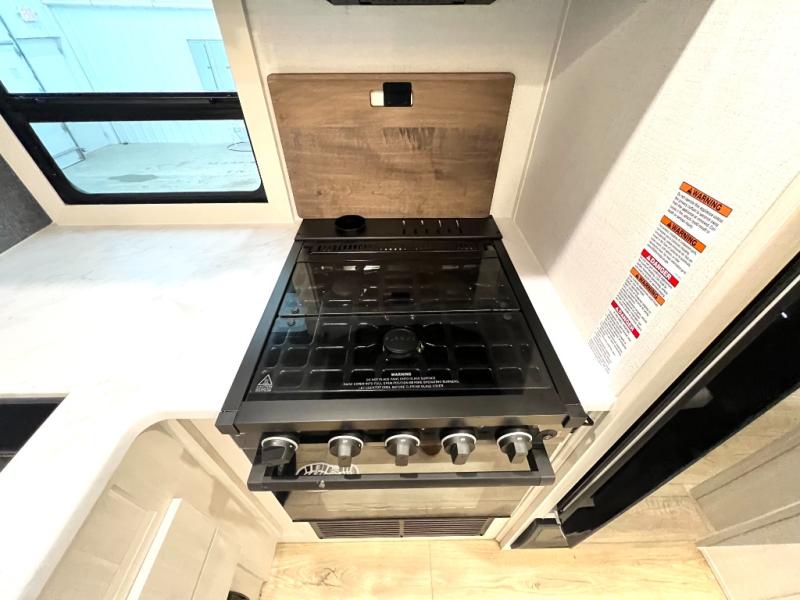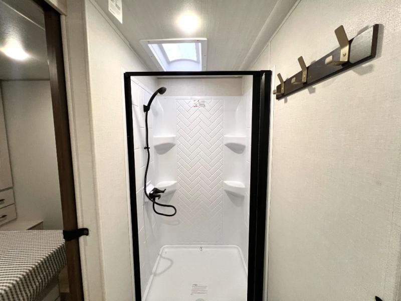 This spacious travel trailer is perfect for those who need plenty of sleeping space! There are four bunks in the bunkhouse for little ones or your friends, and the front master bedroom will feel just like home with its queen-size bed and dual drawers. You'll find a EZ-out sofa and booth dinette within the large slide in the main living area, and there is a walk-in pantry to store food, jackets, or umbrellas. And there is washer and dryer prep in the pantry if you choose to add those appliances. Don't overlook the exterior that includes an outside kitchen, a 21' electric awning, and outside storage!