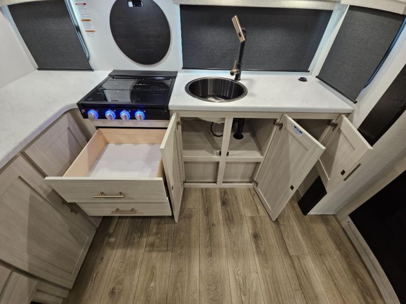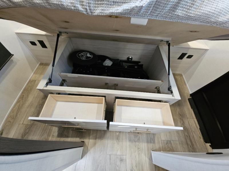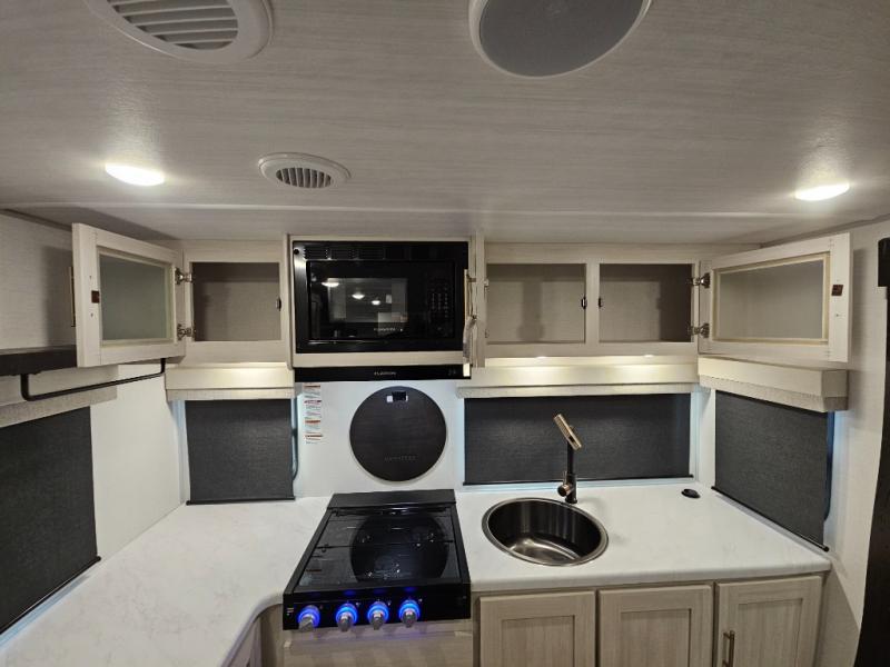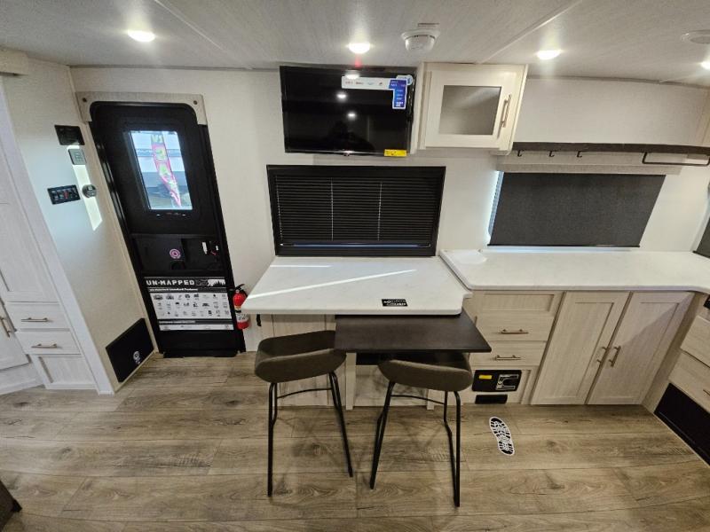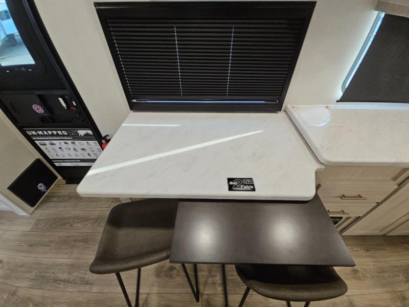 The Forest River Un-Mapped travel trailers deliver an unparalleled travel experience thanks to their incredible features, starting with the aluminum-framed floor with block foam insulation that ensures exceptional structural integrity and thermal efficiency, along with the sealed underbelly with forced heat & radiant foil barrier that provides superior insulation and heat management, and the power tongue jack facilitates easy maneuvering and stabilization of the trailer. Plus, the 30 Amp charge controller with solar inverter prep is ready for integration with solar power systems, catering to eco-conscious travelers seeking off-grid capabilities. Inside, you will find seamless Surf-X kitchen countertops that offer a sleek, durable surface and are easy to maintain for busy travelers. Further, the blackout roller shades will add privacy and light control for restful nights and cozy daytime retreats.