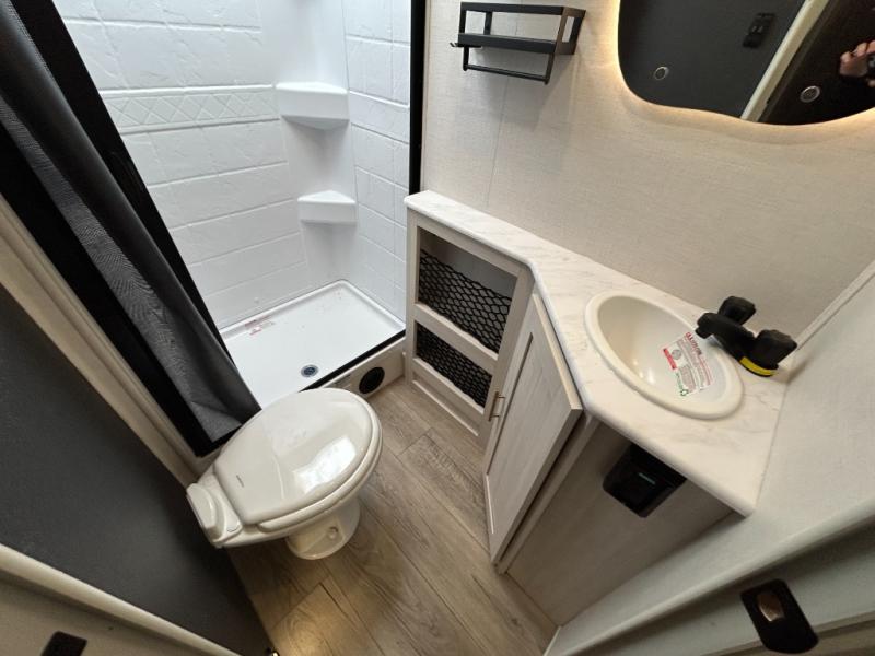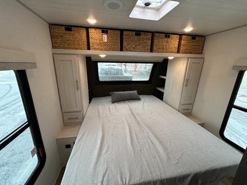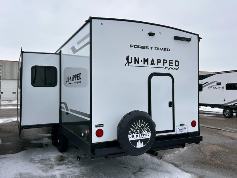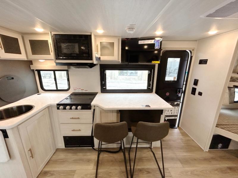 The Forest River Un-Mapped travel trailers deliver an unparalleled travel experience thanks to their incredible features, starting with the aluminum-framed floor with block foam insulation that ensures exceptional structural integrity and thermal efficiency, along with the sealed underbelly with forced heat & radiant foil barrier that provides superior insulation and heat management, and the power tongue jack facilitates easy maneuvering and stabilization of the trailer. Plus, the 30 Amp charge controller with solar inverter prep is ready for integration with solar power systems, catering to eco-conscious travelers seeking off-grid capabilities. Inside, you will find seamless Surf-X kitchen countertops that offer a sleek, durable surface and are easy to maintain for busy travelers. Further, the blackout roller shades will add privacy and light control for restful nights and cozy daytime retreats.